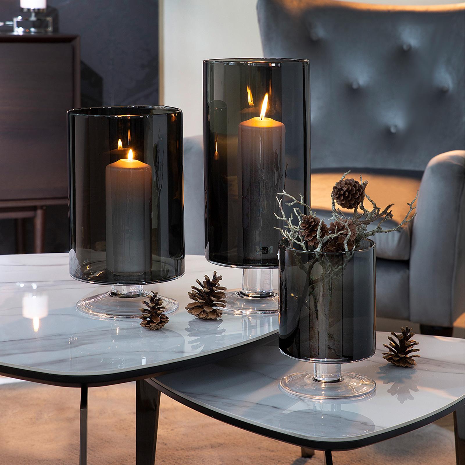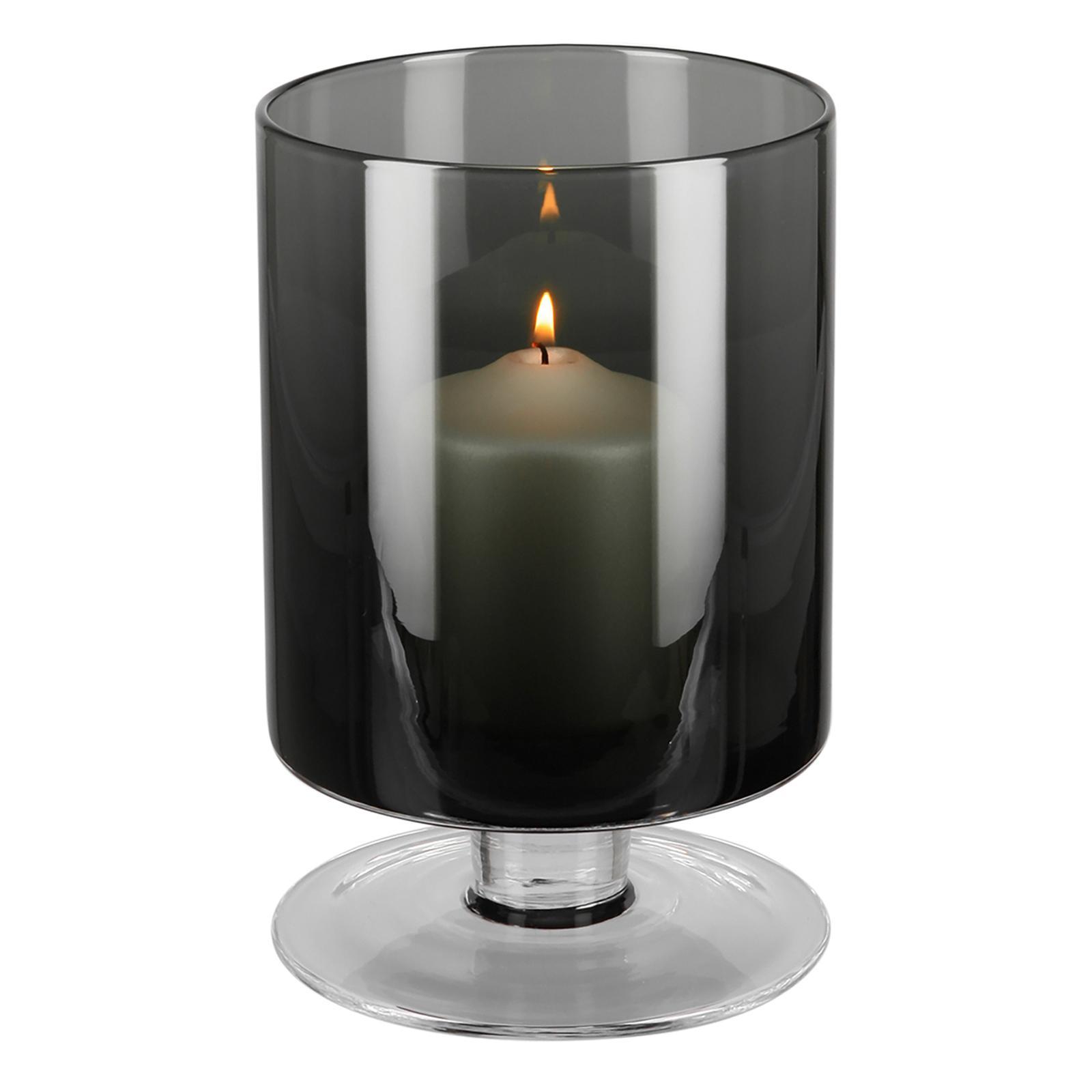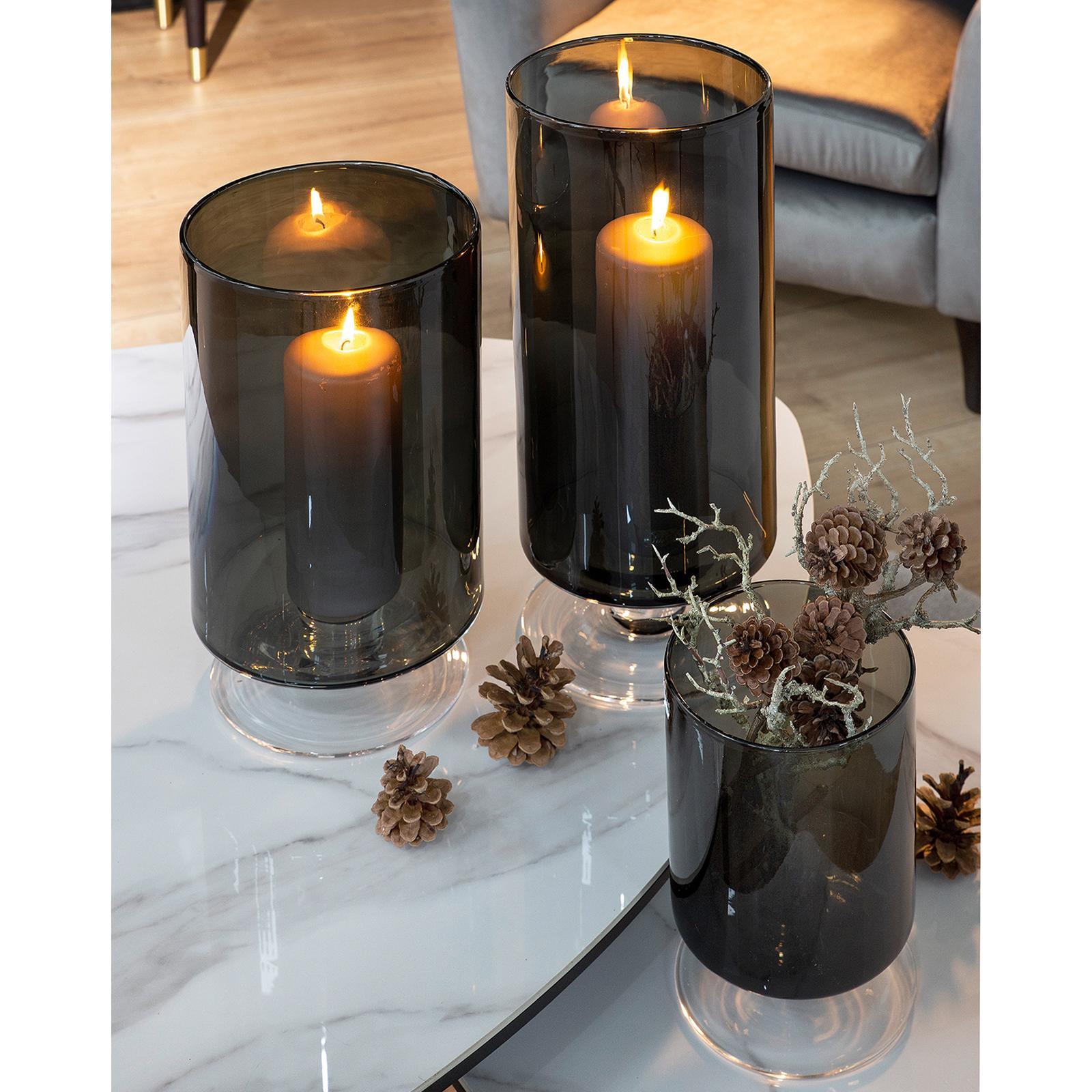 • Länge ca.: 15,3 cm • Breite ca.: 15,3 cm • Höhe ca.: 23 cm • Durchmesser ca.: 15,3 cm • Serie: Fink Living • Kapazität: für 1 Stumpenkerze • Material: Glas • Veredelung: durchgefärbtes Glas • Oberfläche: glänzend • Oberfläche Details: glatt • Farbe: grau-transparent • Eigenschaft: mit Standfuß • Form: rund • Dimension: klein • Umgebungsnutzung: Für Innenbereich und geschützten Außenbereich • Anlass: Saisonale & thematische Deko, Gartenabende, Geschenkidee • Nutzungsbereich: Sideboard, Fensterbank, Tischdekoration, Anrichte • Besonderheit: mundgeblasen • Besonderheit I: auch als Vase verwendbar • Gewicht ca.: 1,7 Kg