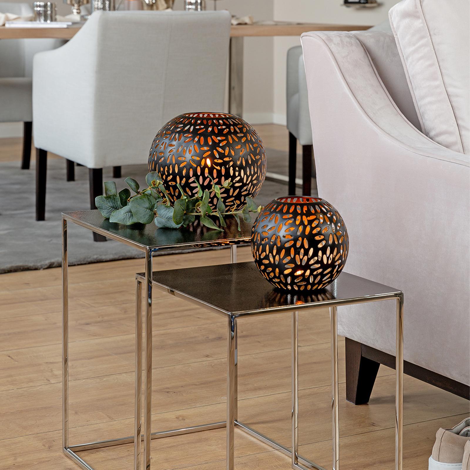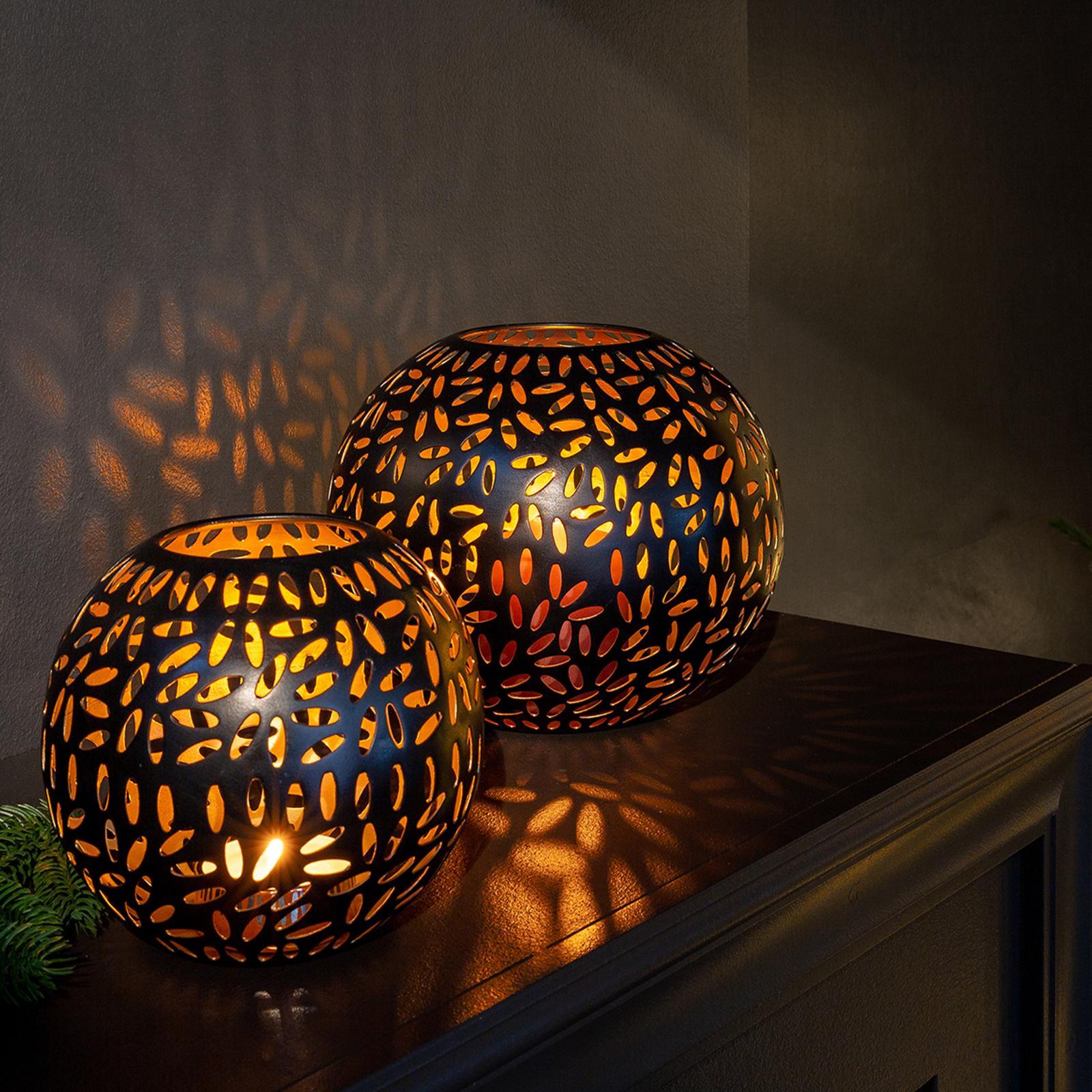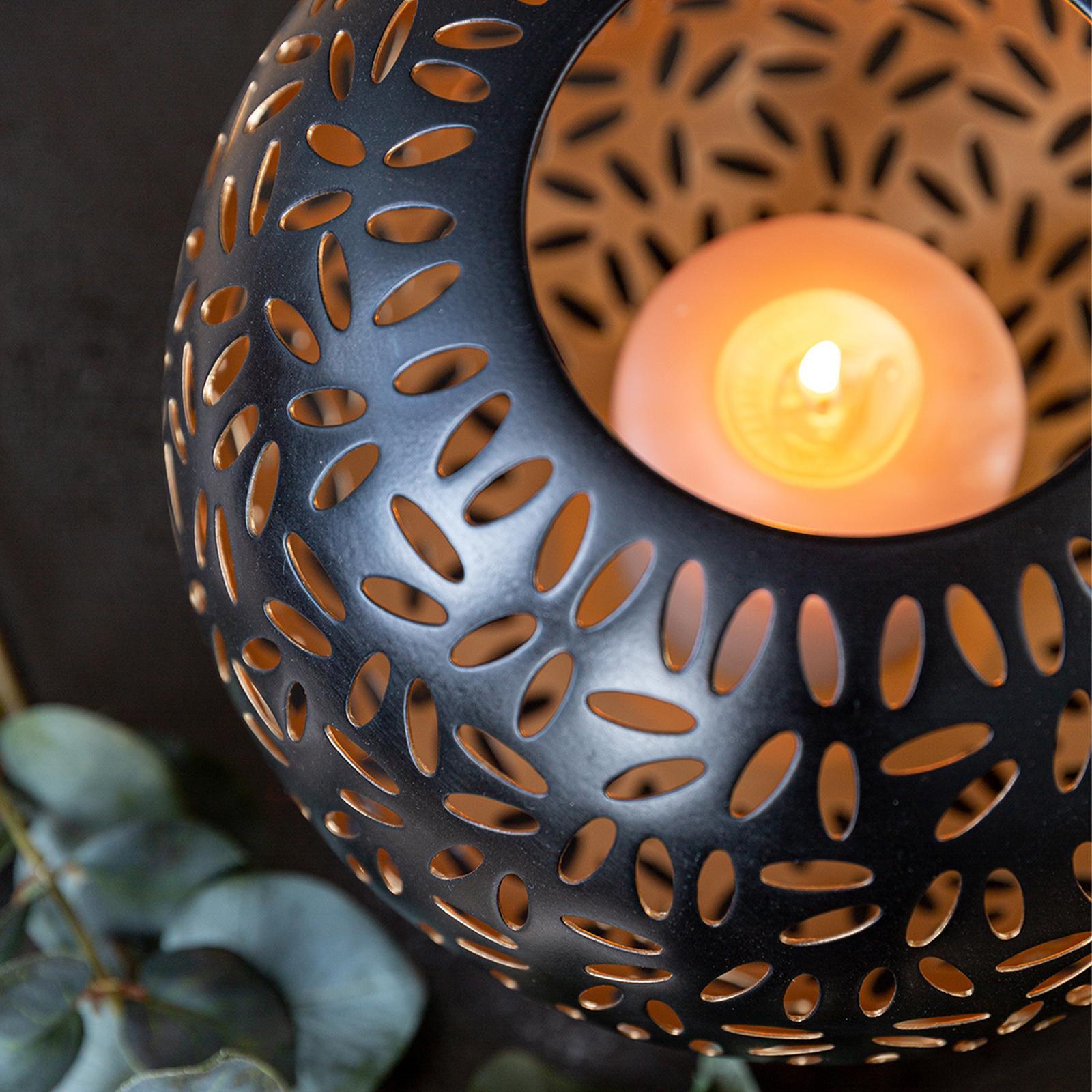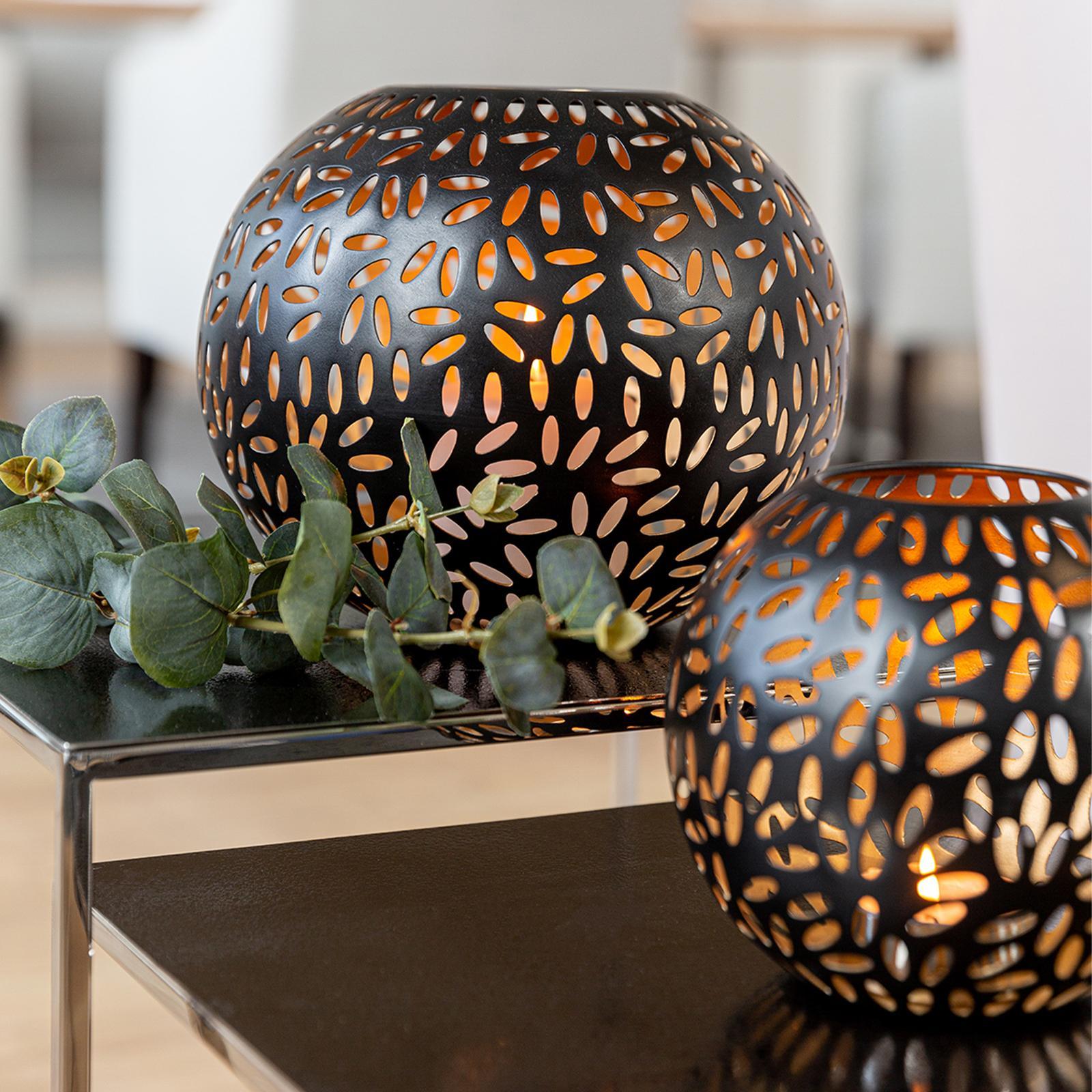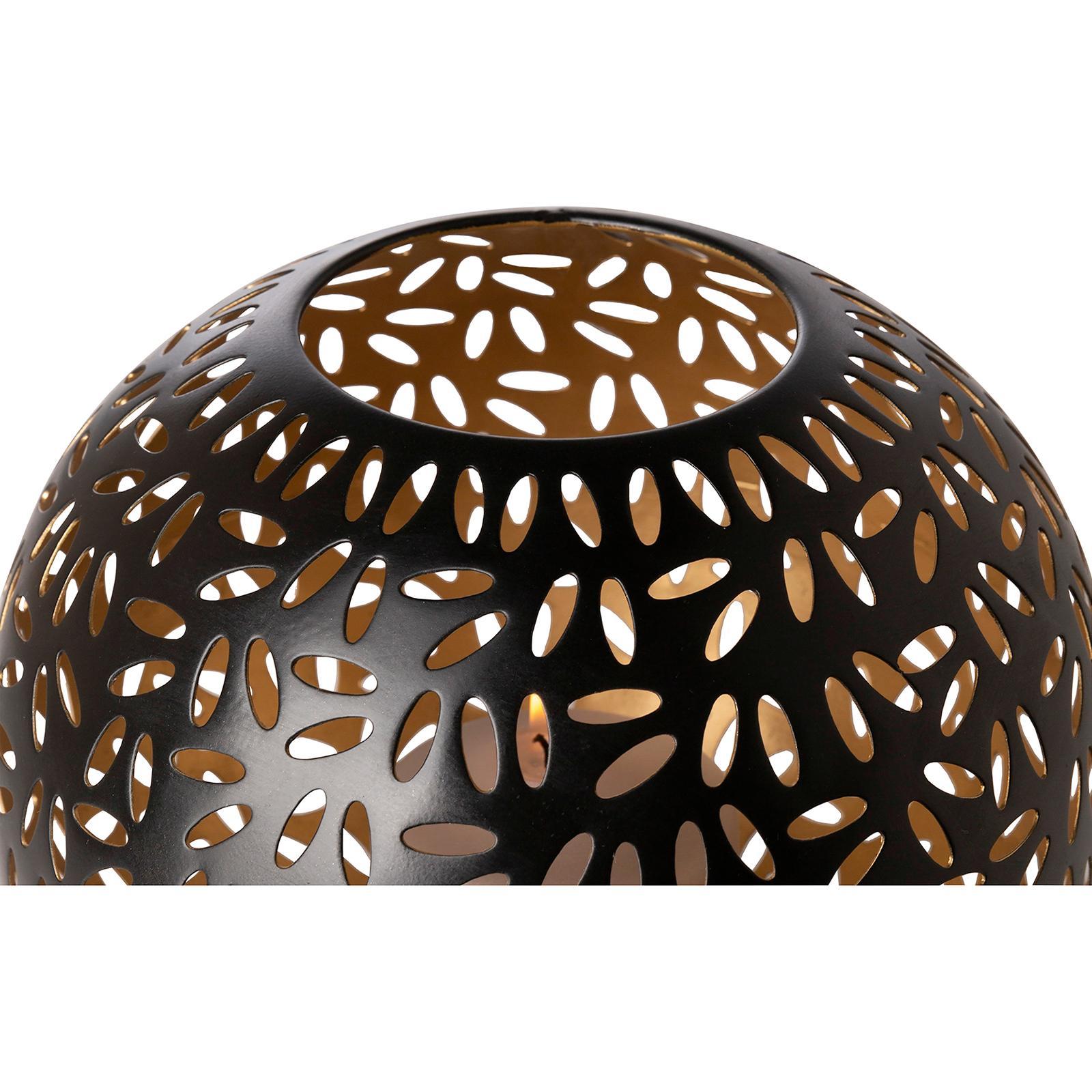 ✓ Schwarzes Windlicht Ø 17 cm aus Metall - dekorativer Halter in Kugelform als stilvolles Wohnaccessoire ✓ Außen matt schwarz & innen golden - stilvoller Kontrast für warme Lichtreflexe & luxuriöses Ambiente ✓ Die dekorativen Durchbrüche schaffen spannende Schattenspiele sowie eine gemütliche Atmosphäre ✓ Vielseitige Dekoration, schönes Stimmungslicht für Wohnzimmer, Esszimmer, Terrasse & Weihnachten ✓ Hochwertige Verarbeitung - runder langlebiger Kugel-Kerzenhalter für eine stilvolle & zeitlose Eleganz