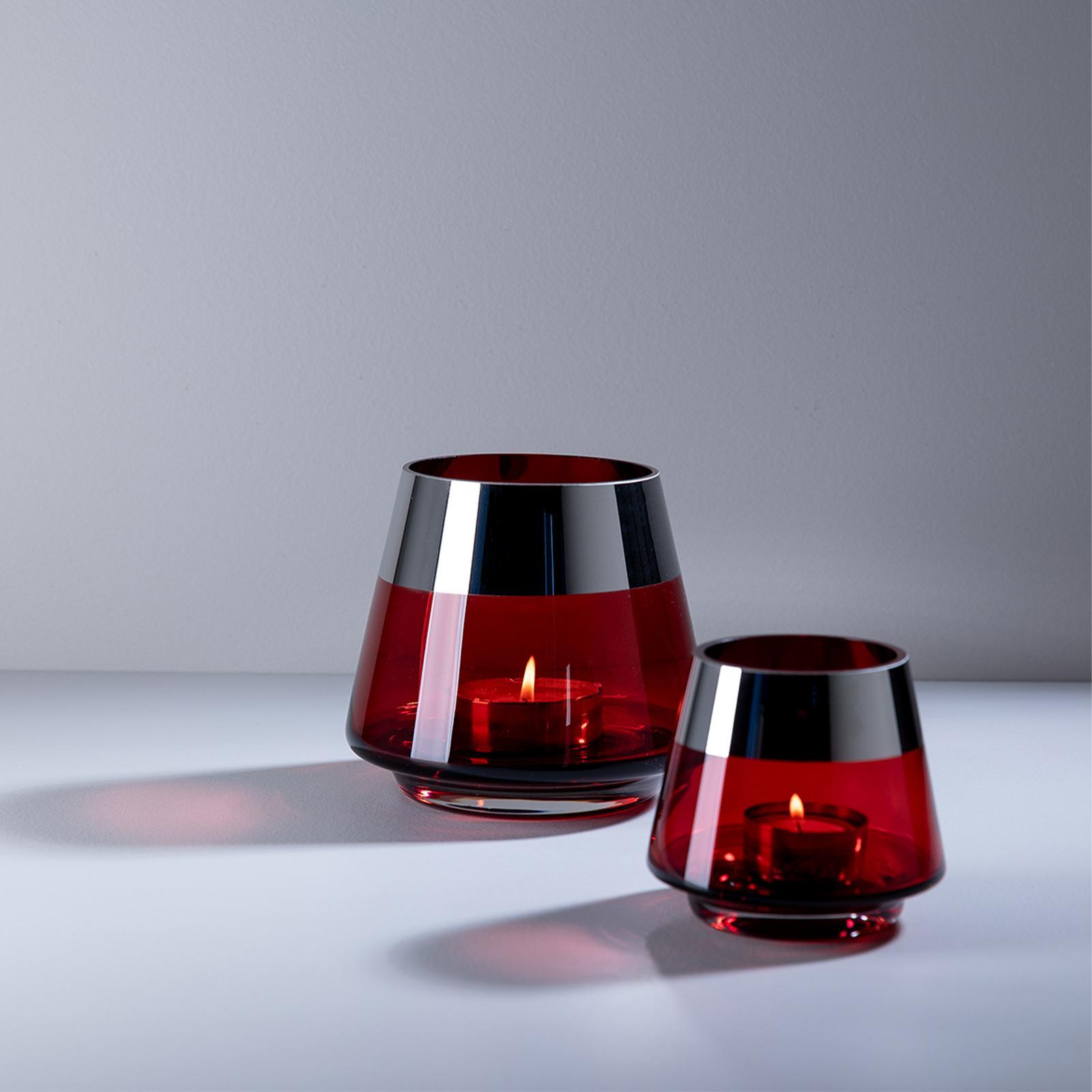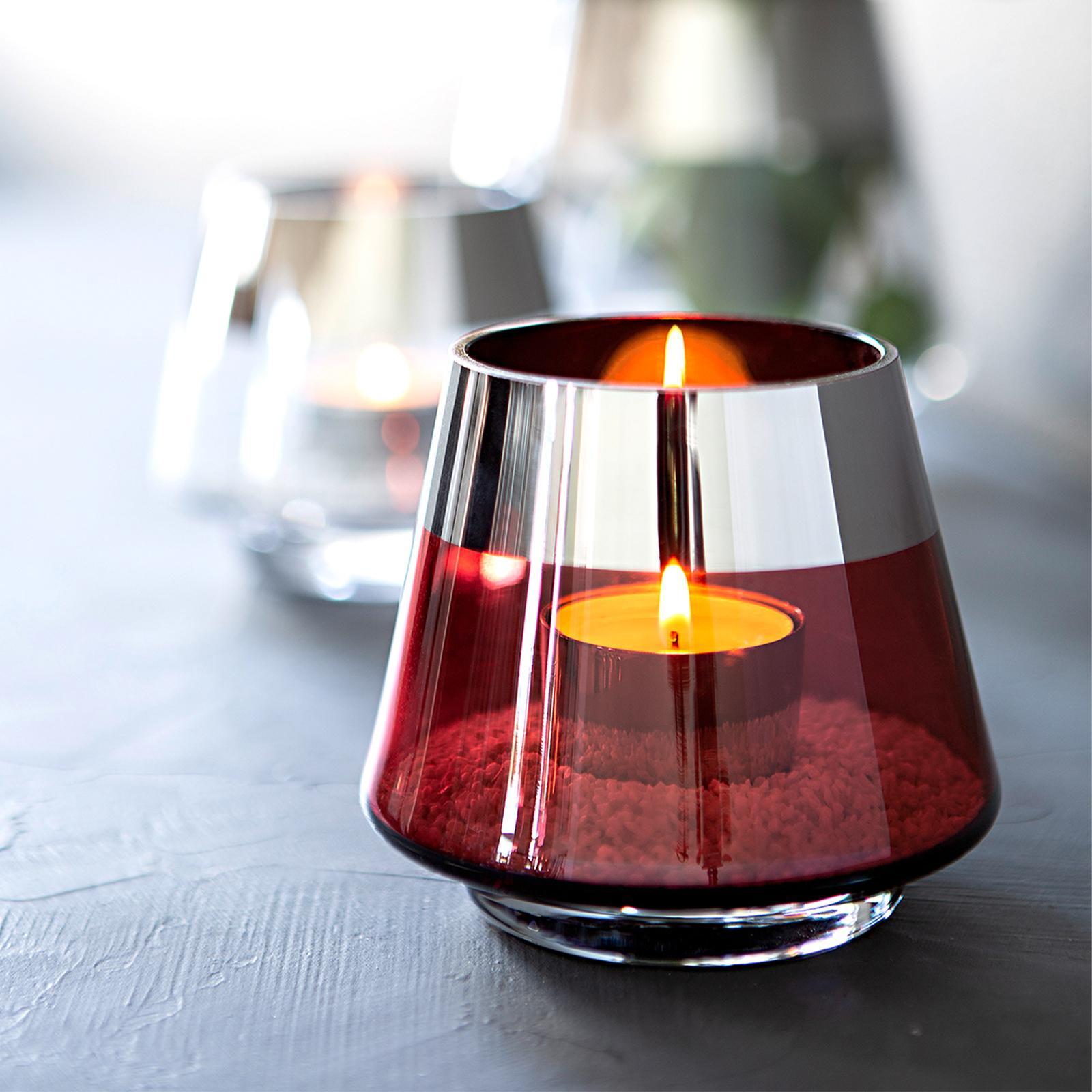 ✓ Zeitloser Glas-Teelichthalter Ø 11 cm - ideal für romantisches Kerzenlicht im Wohn- oder Außenbereich ✓ Der silberne Glasrand verstärkt den Kerzenschein und sorgt für funkelnde Reflexionen in jedem Raum ✓ Windlicht in transparentem Rot mit verjüngter Öffnung - schützt die Flamme und intensiviert das Licht ✓ Vielseitig einsetzbarer Kerzenbecher - für Tischdeko, Sideboard & stimmungsvolle Gartenbeleuchtung ✓ Elegantes Glas-Wohnaccessoire - dekorativ, funktional sowie perfekt für stilvolle Lichtakzente zuhause