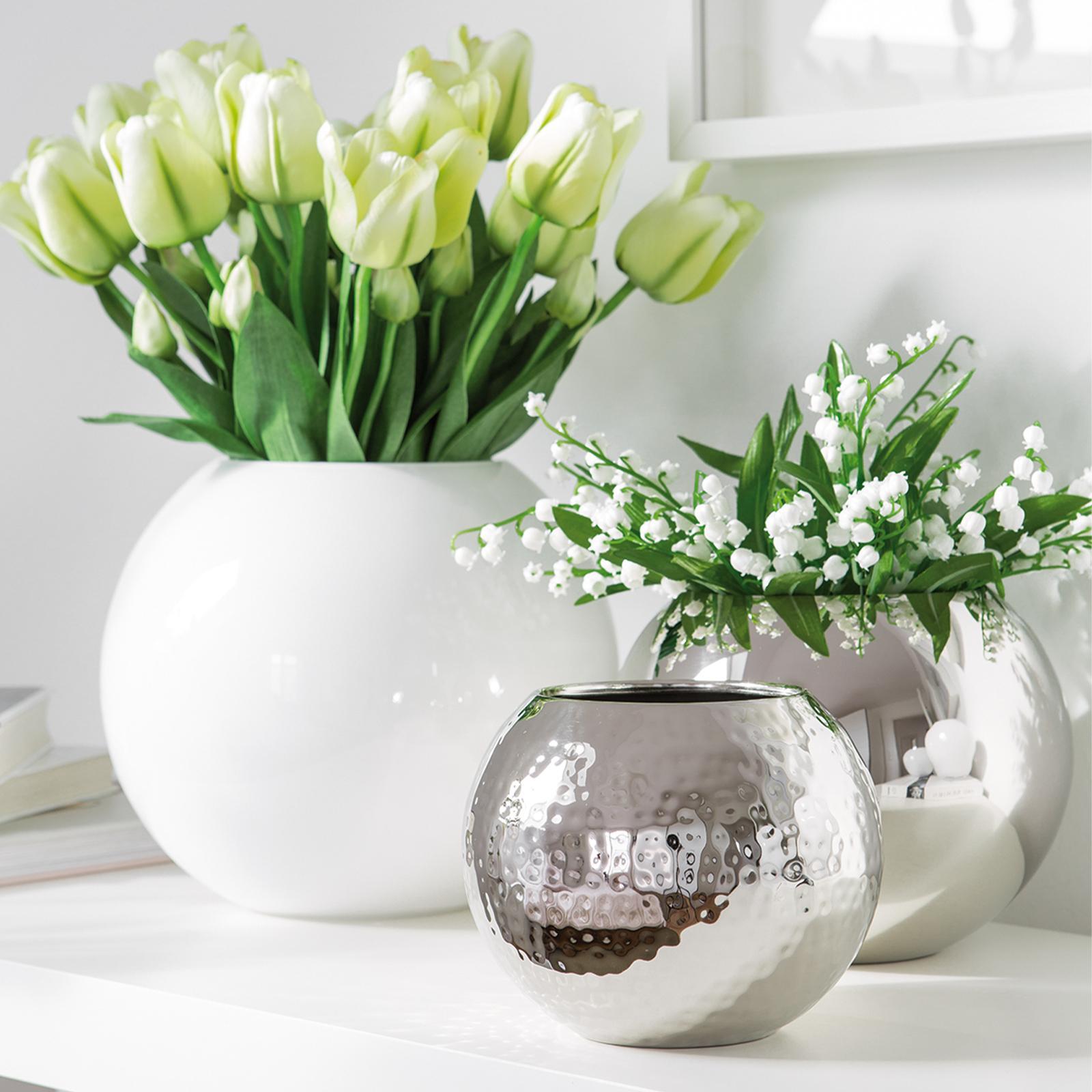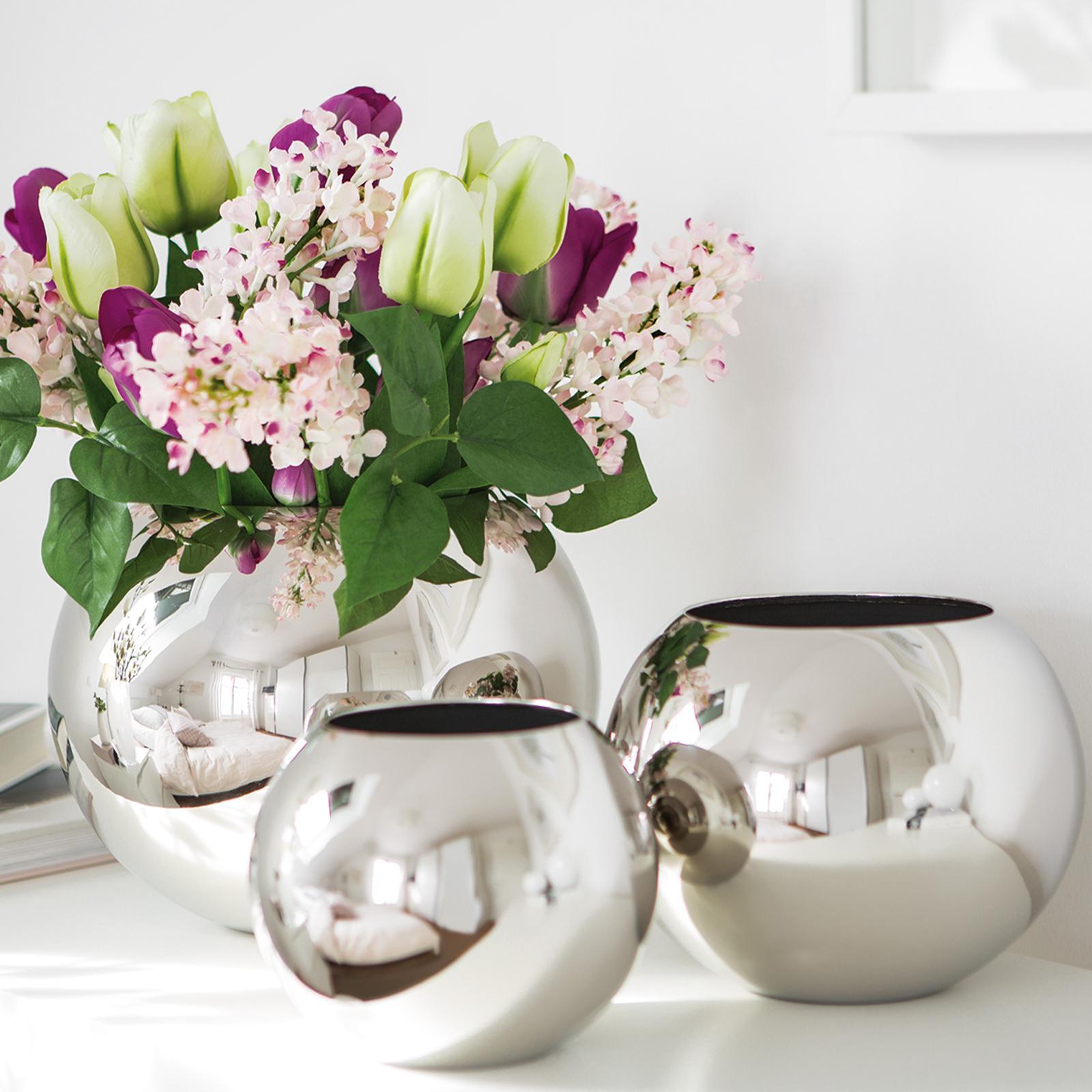 ✓ Runde Kugelvase 20 cm - silberne Vase im modernen Design als dekorativer Blickfang im Wohnbereich ✓ Hochglänzende Oberfläche - Eisenvase mit edlem Schimmer für eindrucksvolle Licht- & Spiegeleffekte ✓ Kompakte Größe - platzsparend und ideal geeignet für Tischdekoration, Fensterbank & auch Sideboard ✓ Vielseitig kombinierbar, harmoniert mit frischen Blumen, Zweigen, Trockenblumen & Deko-Ensembles ✓ Schönes Wohnaccessoire, vernickelte Metall Deko-Vase als Geschenkidee für zeitlose Raumgestaltung