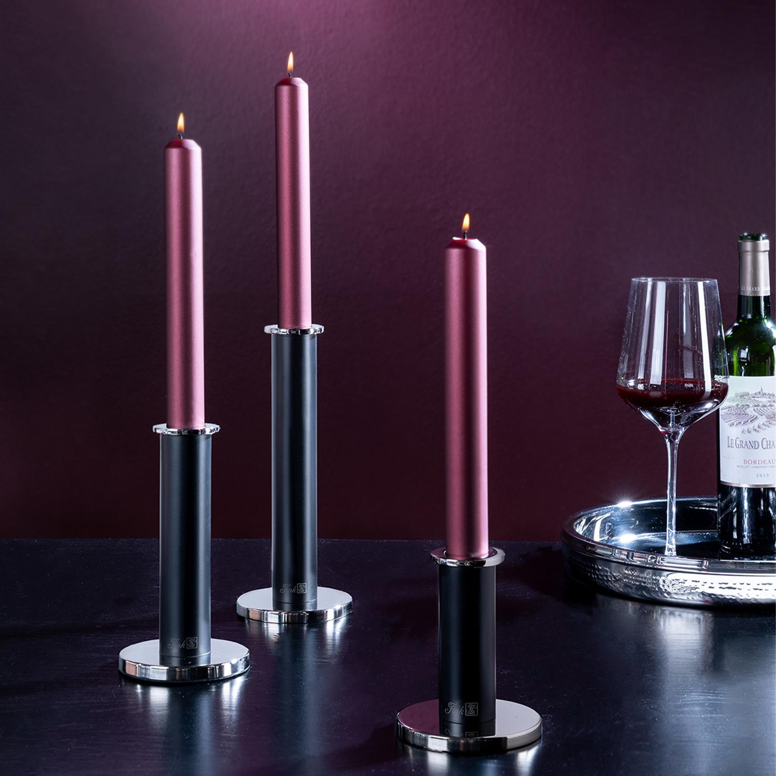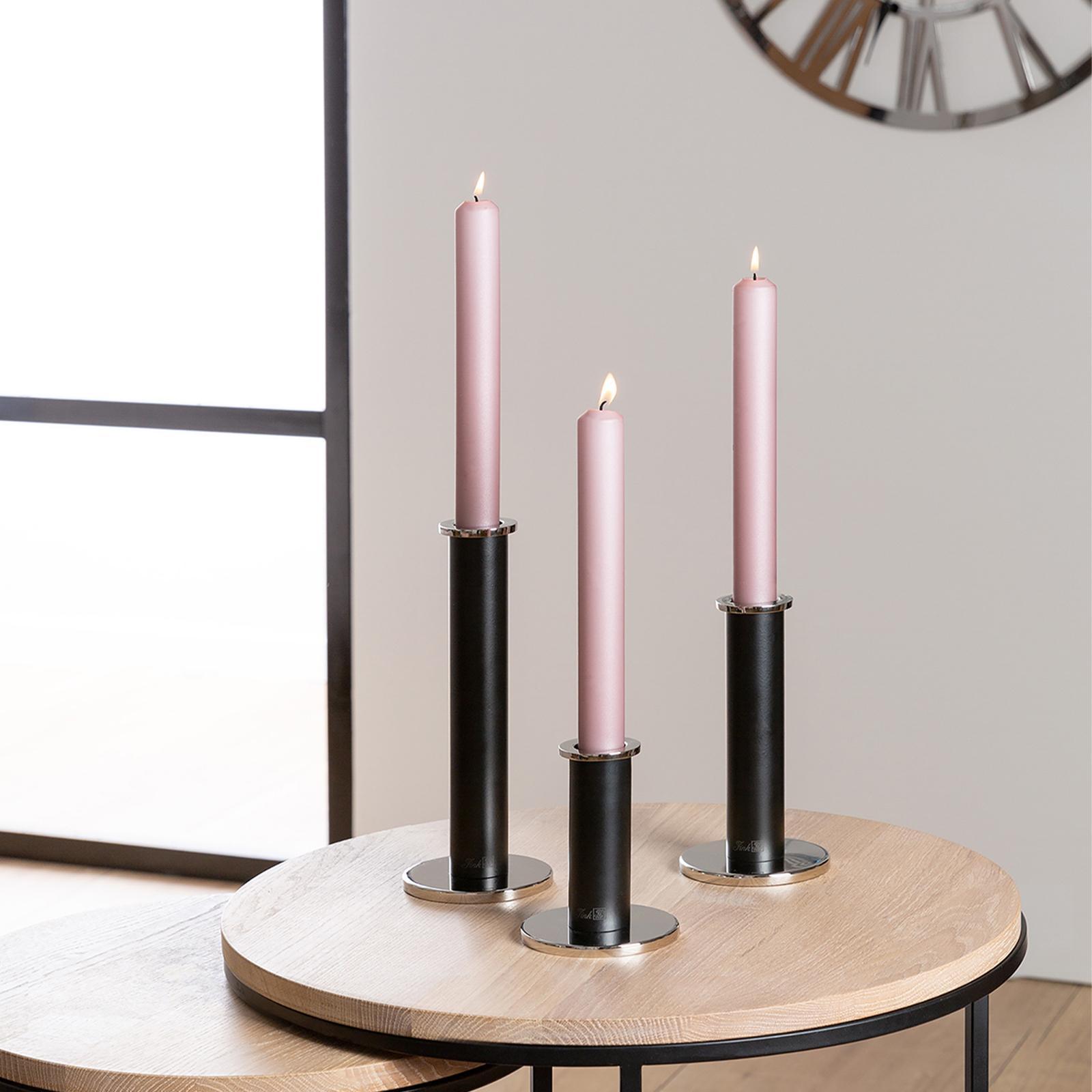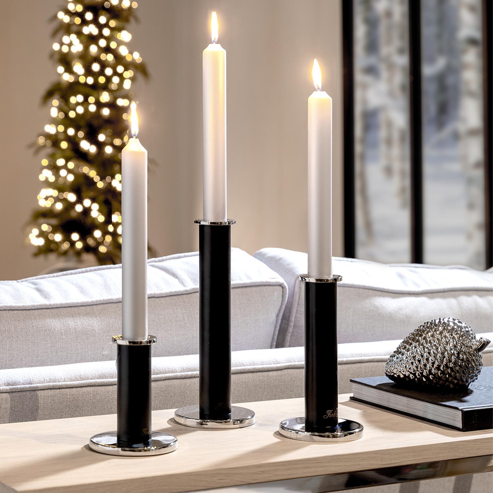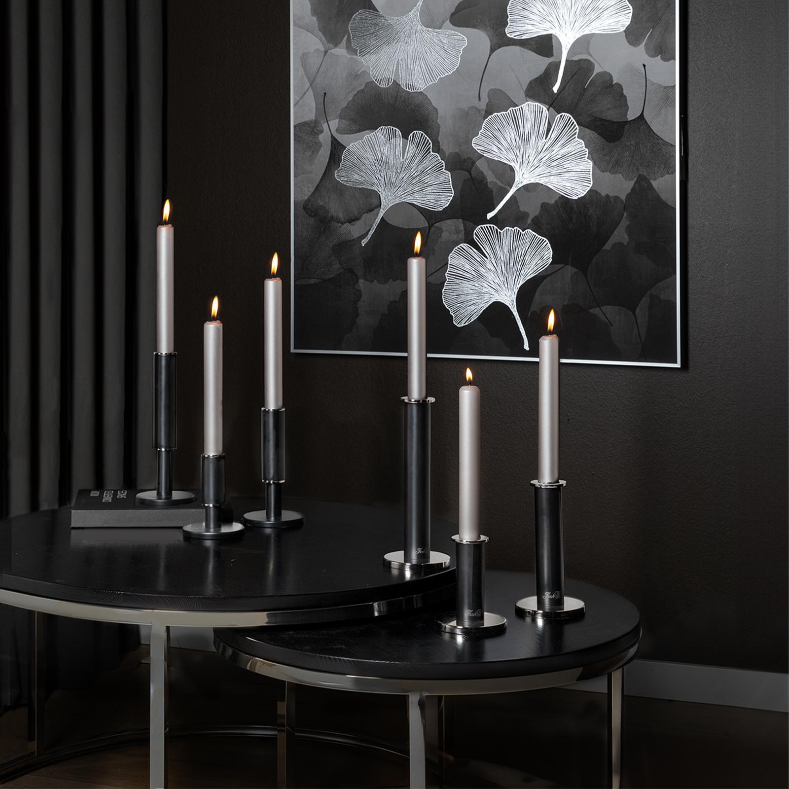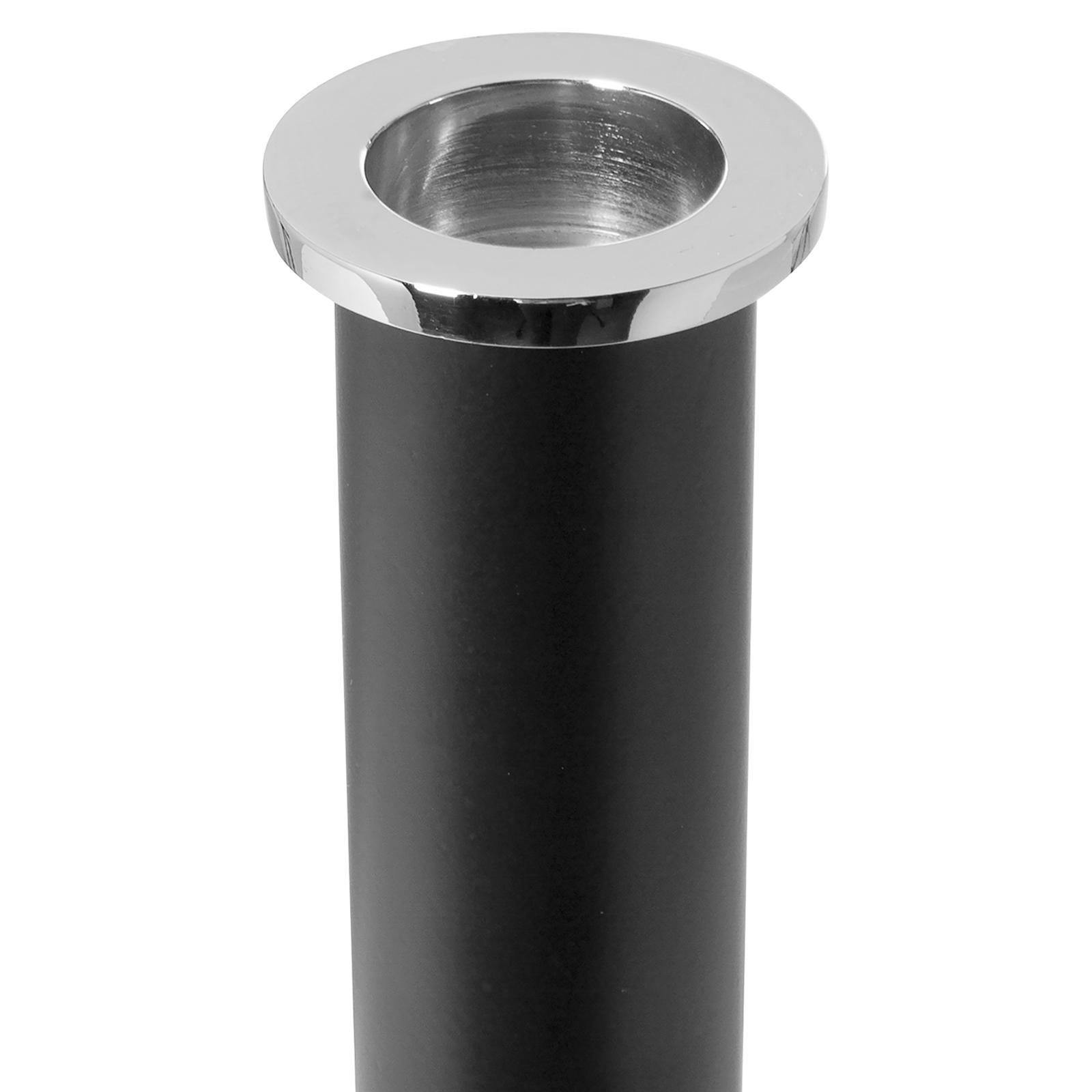 ✓ Schwarzer Kerzenhalter in modernem Design, ideal als zeitloses Wohnaccessoire & eleganter Leuchter ✓ Die matte Oberfläche kombiniert mit metallischen Details verleiht dem Kerzenständer eine edle Optik ✓ Mit seiner Höhe von 18 cm bietet der Halter Platz für Stabkerzen unterschiedlicher Größen und Formen ✓ Kerzenleuchter als dekorativer Blickfang auf Esstisch, Sideboard und bei festlichen Anlässen im Alltag ✓ Der silberne Kerzenhalter-Fuß sorgt für einen sicheren Stand & ergänzt das stilvolle & schlichte Design