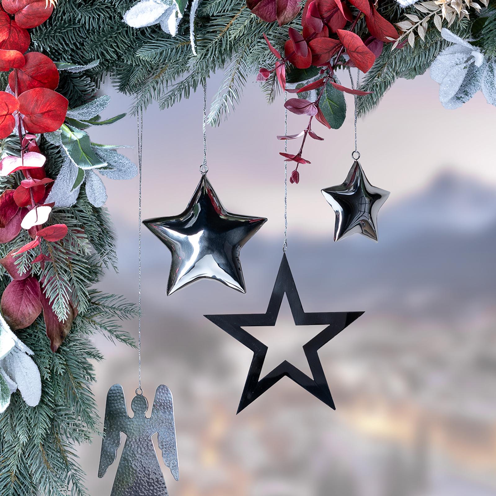 ✓ Der 10 cm Stern aus schwarzem Stahl setzt moderne & elegante Akzente an Fenster oder Tannenzweig ✓ Mit dem matten Finish wirkt der Stern-Anhänger puristisch, ideal für stilvolle Ganzjahres-Dekorationen ✓ Neben der Adventszeit ist der Hängestern als Tischdeko, Geschenkdetail und Wandakzent ein Highlight ✓ Die robuste Verarbeitung macht den Deko-Stern langlebig & vielseitig & für kreative DIY-Ideen nutzbar ✓ In Kombi mit Gold, Weiß oder Naturmaterialien entsteht mit diesem Stern ein schönes Raumambiente