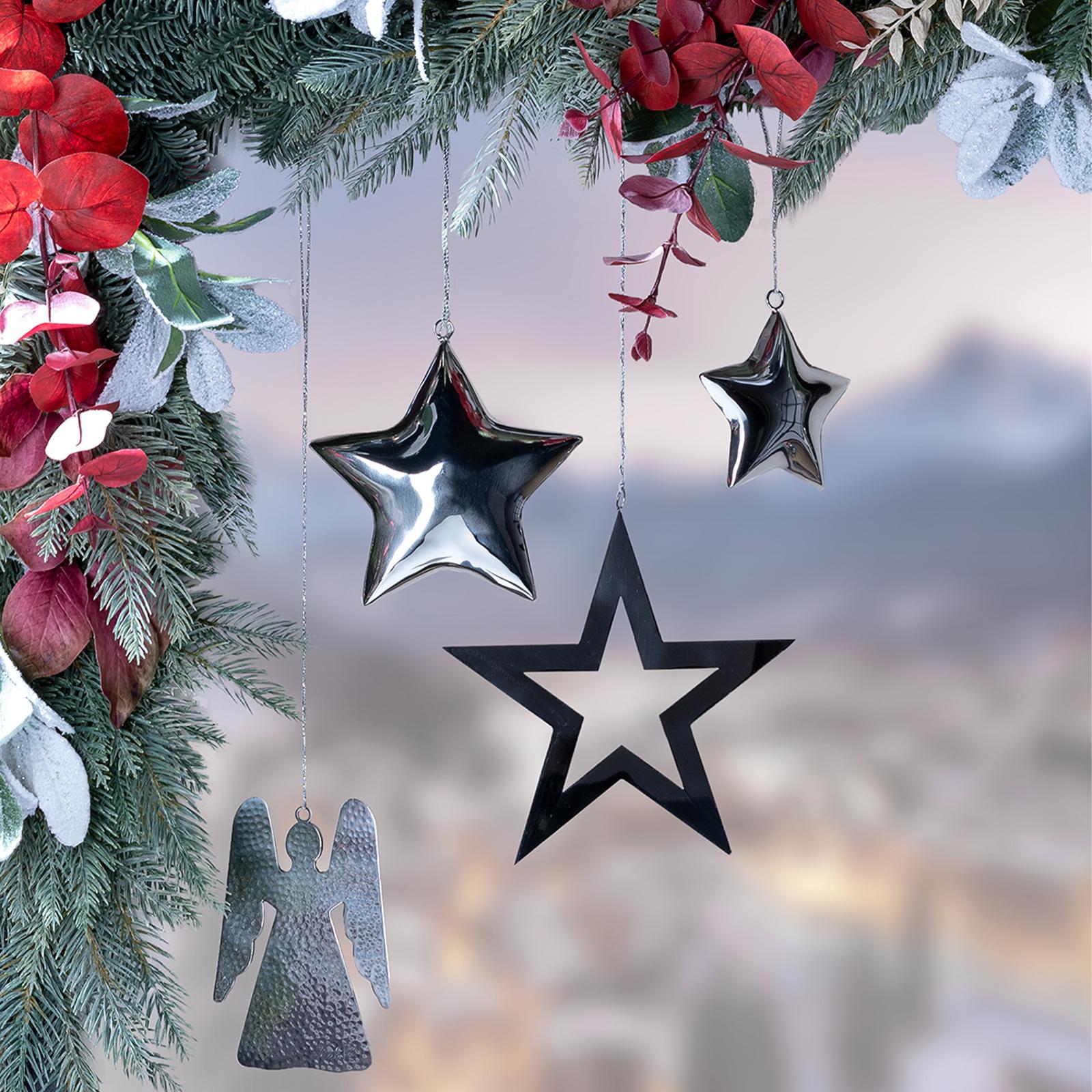 ✓ Der 15 cm Stern aus schwarzem Stahl setzt moderne & elegante Akzente an Fenster oder Tannenzweig ✓ Mit dem matten Finish wirkt der Stern-Anhänger puristisch, ideal für stilvolle Ganzjahres-Dekorationen ✓ Neben der Adventszeit ist der Hängestern als Tischdeko, Geschenkdetail und Wandakzent ein Highlight ✓ Die robuste Verarbeitung macht den Deko-Stern langlebig & vielseitig & für kreative DIY-Ideen nutzbar ✓ In Kombi mit Gold, Weiß oder Naturmaterialien entsteht mit diesem Stern ein schönes Raumambiente