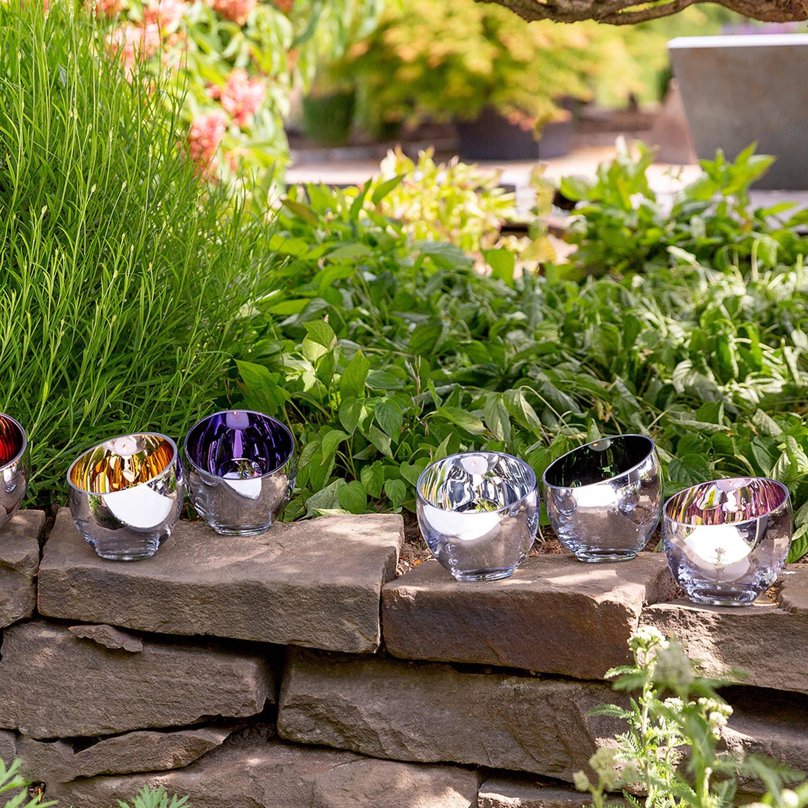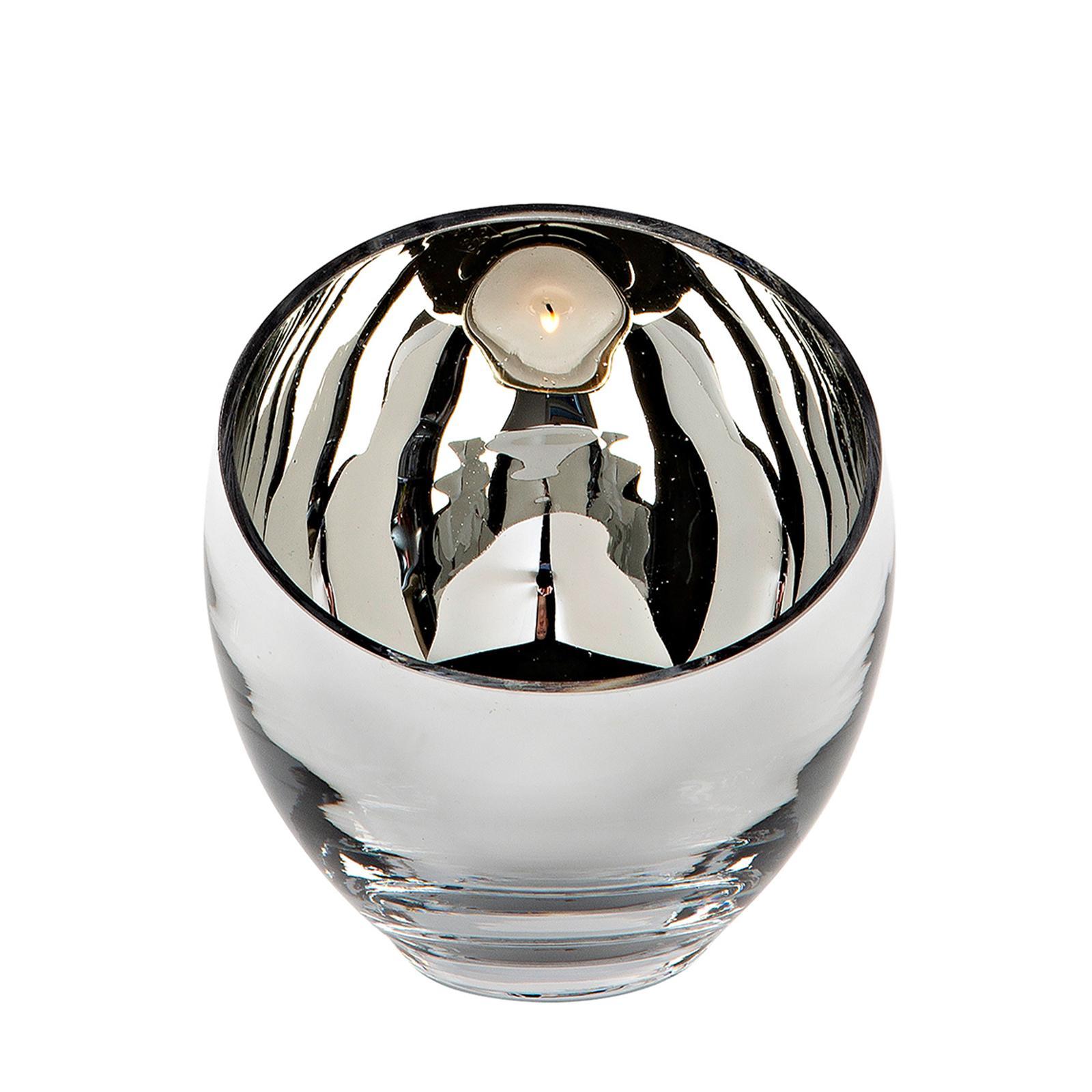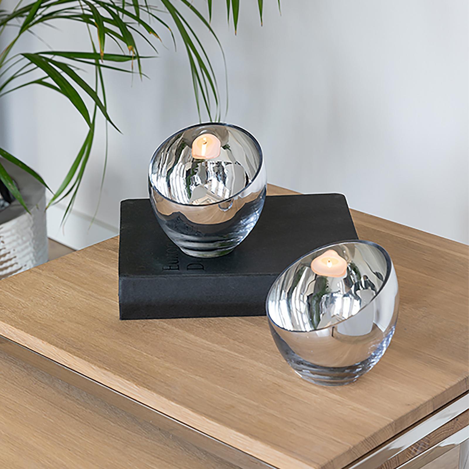 • Länge ca.: 11 cm • Breite ca.: 11 cm • Höhe ca.: 11 cm • Durchmesser ca.: 11 cm • Serie: Fink Living • Kapazität: für 2 Teelicht Ø 6 cm • Material: Glas • Oberfläche: silberglänzend • Oberfläche Details: glatt • spülmaschinengeeignet: nein • Farbe: silber • Eigenschaft: ohne Füße • Ausstattung: mit abgeschrägtem oberem Rand • Form: rund • Dimension: mittel • Look & Stil: modern • Setumfang: 2-teilig • Umgebungsnutzung: Für Innenbereich und geschützten Außenbereich • Anlass: Stimmungsvolle Alltags-Momente, Saisonale Deko, Wohnambiente • Nutzungsbereich: Sideboard, Fensterbank, Tischdekoration, Anrichte • Besonderheit: mundgeblasen