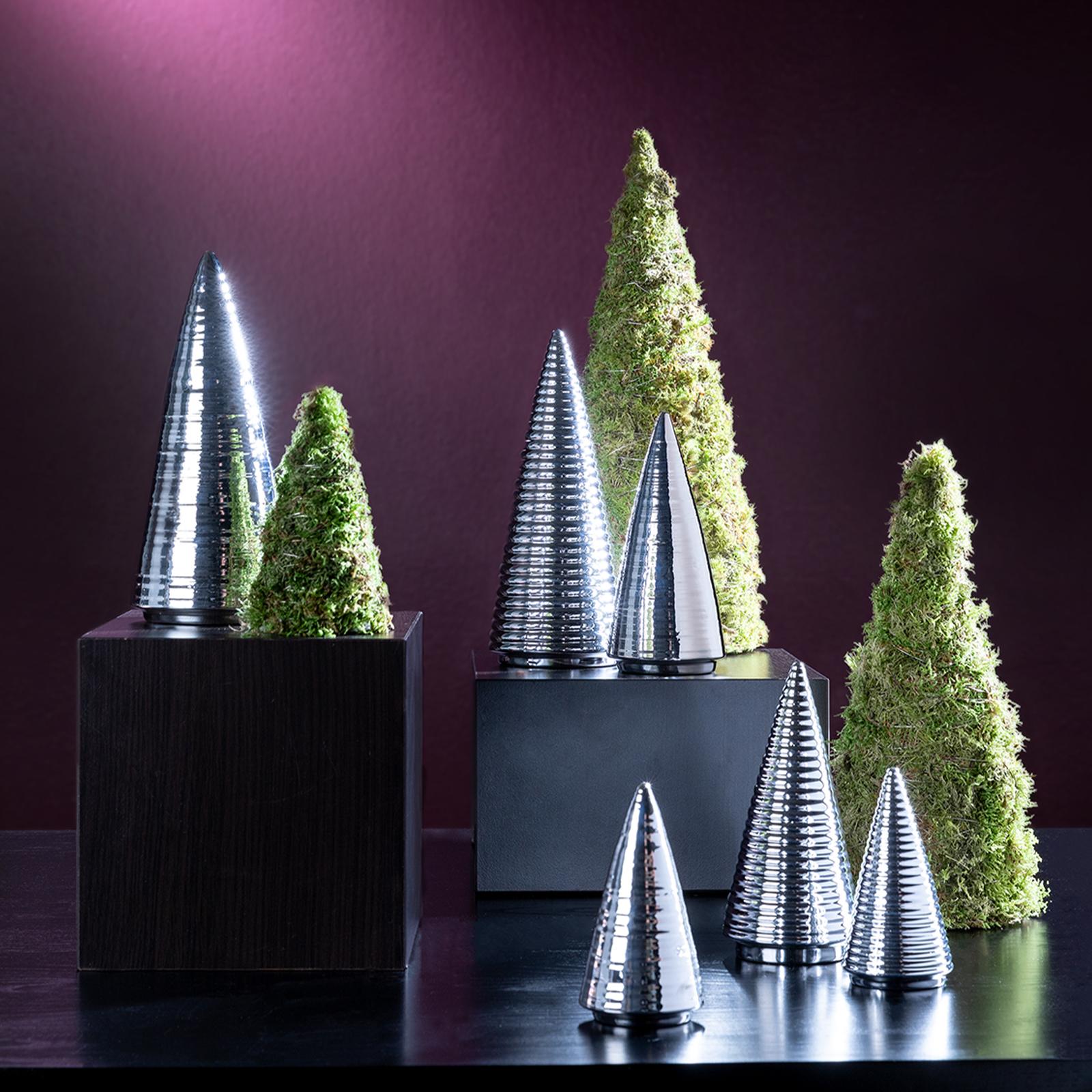 • Länge ca.: 9 cm • Breite ca.: 9 cm • Höhe ca.: 18,5 cm • Durchmesser ca.: 9 cm • Serie: Fink Living • Material: Porzellan • Oberfläche: glänzend poliert • Oberfläche Details: Streifenstruktur • Farbe: silber • Eigenschaft: traditionelle, aufwendige Handarbeit • Platzierungsart: zum Stellen • Dimension: mittel • Motiv: Tannenbaum • Umgebungsnutzung: Für Innenbereich • Anlass: Weihnachten, Nikolaus, Adventszeit • Nutzungsbereich: Sideboard, Fensterbank, Tischdekoration, Anrichte • Gewicht ca.: 0,36 Kg