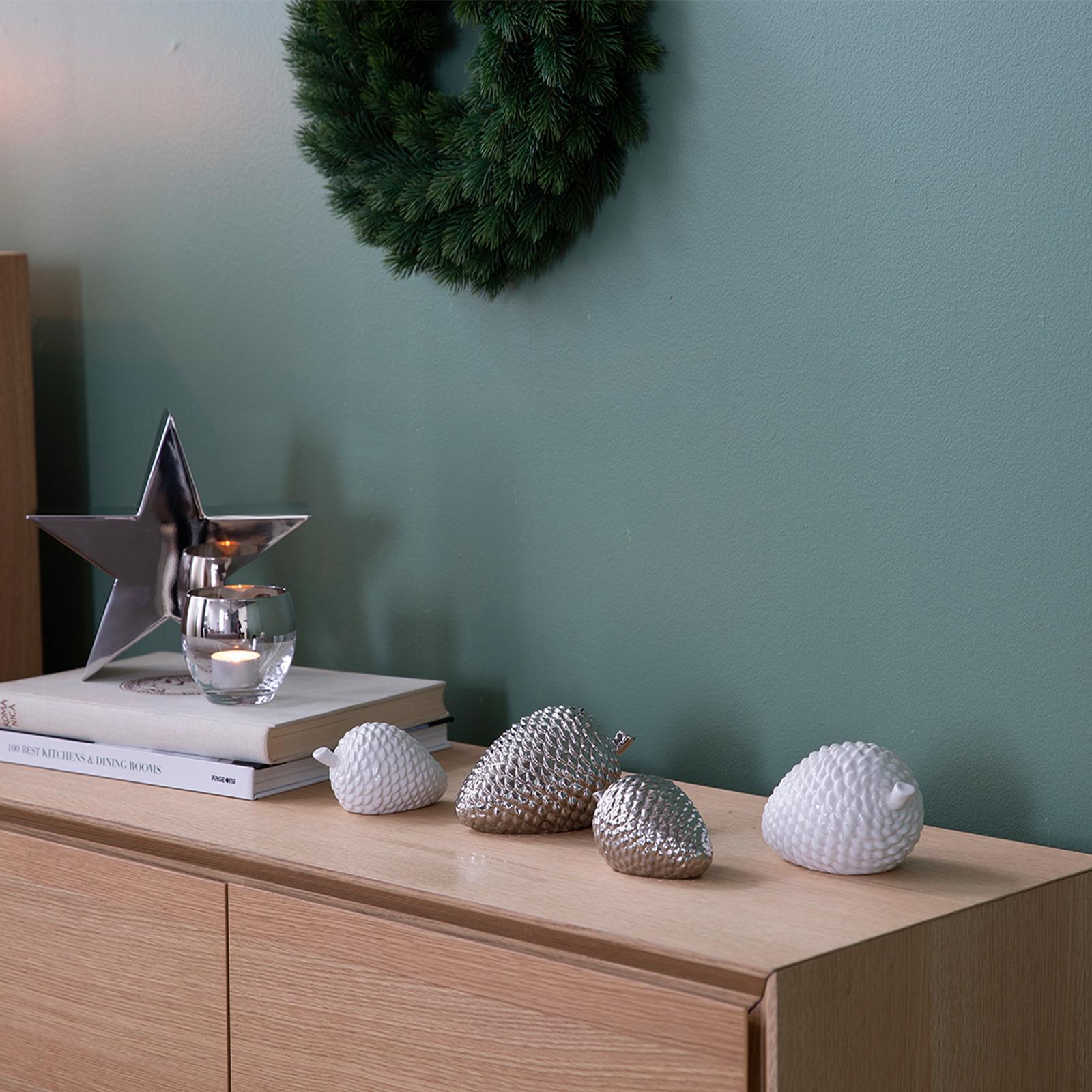 ✓ Großer, silberner 15 cm Deko-Zapfen aus feinem Porzellan, ein edler Akzent für festliche Dekoration ✓ Die detailreiche Struktur verleiht diesem Tannenzapfen eine natürliche sowie elegante Ausstrahlung ✓ Aus hochwertigem Porzellan gefertigt ist der originelle Zapfen langlebig, pflegeleicht & zeitlos schön ✓ Der silberne Tannenapfel ist perfekt mit winterlicher Tisch- oder Fensterbankdekoration kombinierbar ✓ Dekozapfen als dezenter Blickfang, der Weihnachtsflair in moderne und klassische Wohnräume bringt