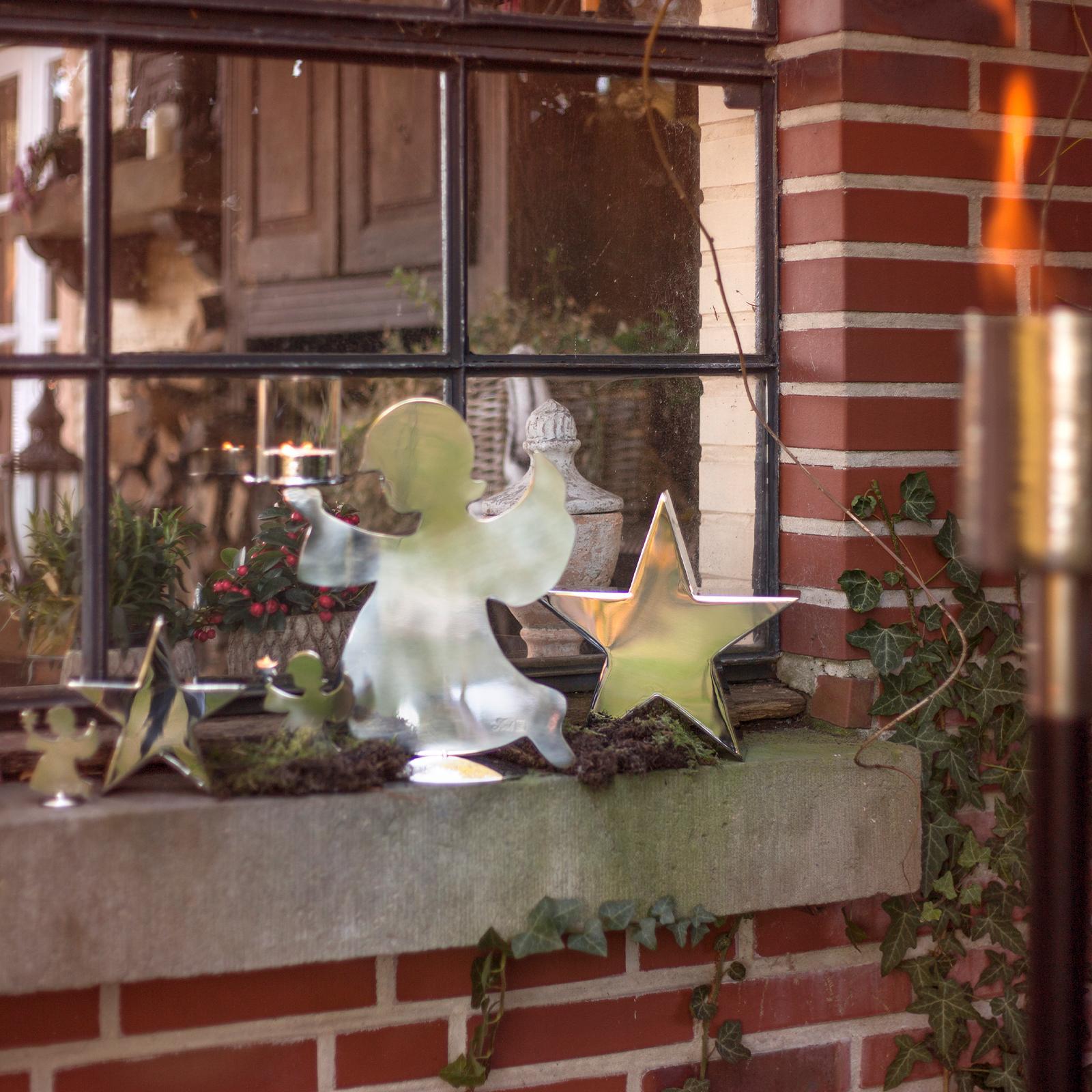 ✓ Charmante 20 cm Engel-Dekofigur aus Edelstahl als moderne Teelicht-Halterung für festliche Momente ✓ Das polierte Edel-Metall schenkt dem Engel eine edle Ausstrahlung und reflektiert warmes Kerzenlicht ✓ Figur in zeitloser Engel-Silhouette - verleiht Fensterbank, Regal oder Sideboard eine himmlische Note ✓ Die kompakte Größe macht diese Kerzenhalter-Engelsfigur zum feinen Detail in Ihrem Wohnambiente ✓ Stilvoll gestaltetes Dekostück & zugleich Teelichthalter - ideal als Geschenk & Highlight zur Adventszeit