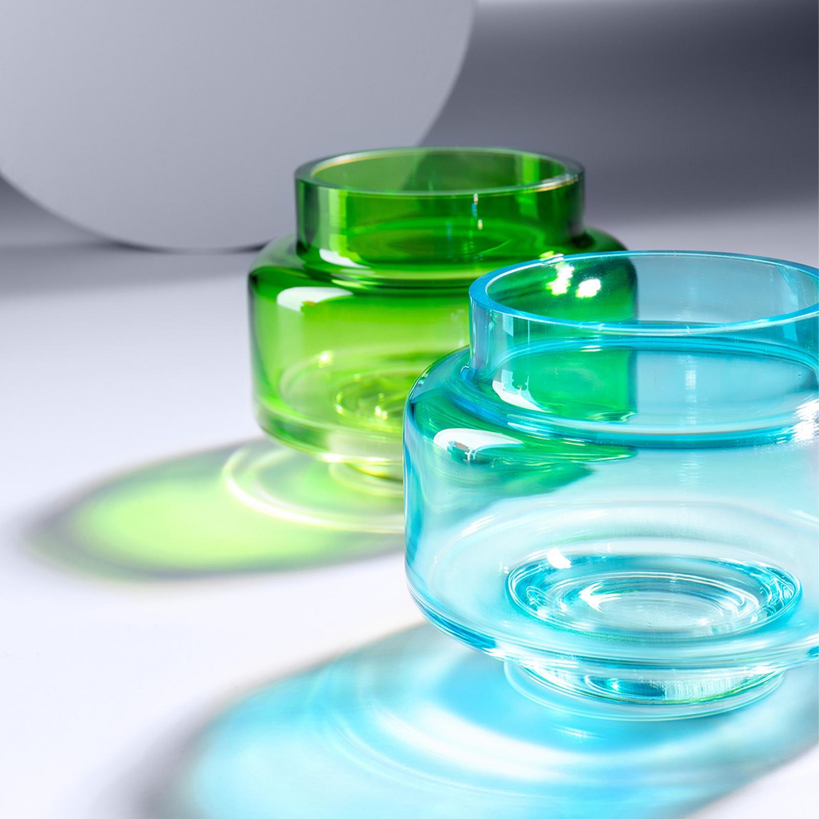 ✓ Modernes 2er-Set Teelichthalter Ø 10 cm aus Glas - in edlem Türkis und Grün - praktisch und stapelbar ✓ Farbintensives Windlicht-Set - kontrastreiche Gestaltung für stilvolle Akzente in Ihrem Wohnambiente ✓ Kerzenlichthalter mit verjüngter Öffnung - schützt die Flamme und verstärkt den warmen Kerzenschein ✓ Vielseitig kombinierbares Deko-Set - ideal für den Tisch, auf dem Sideboard, der Fensterbank & Regal ✓ Diese eleganten, 2-teiligen Glas-Kerzenhalter vereinen funktionale Form mit ausdrucksstarkem Design