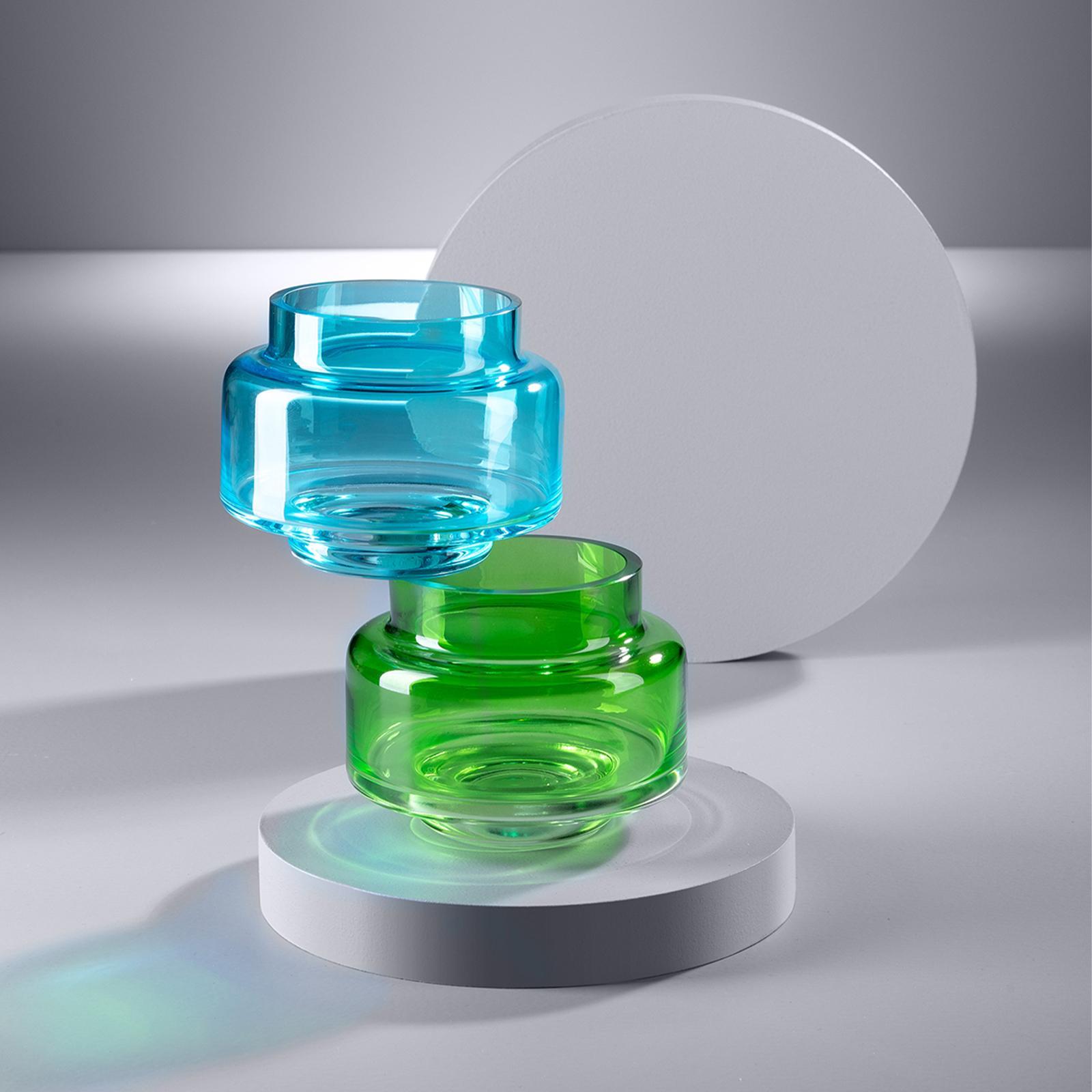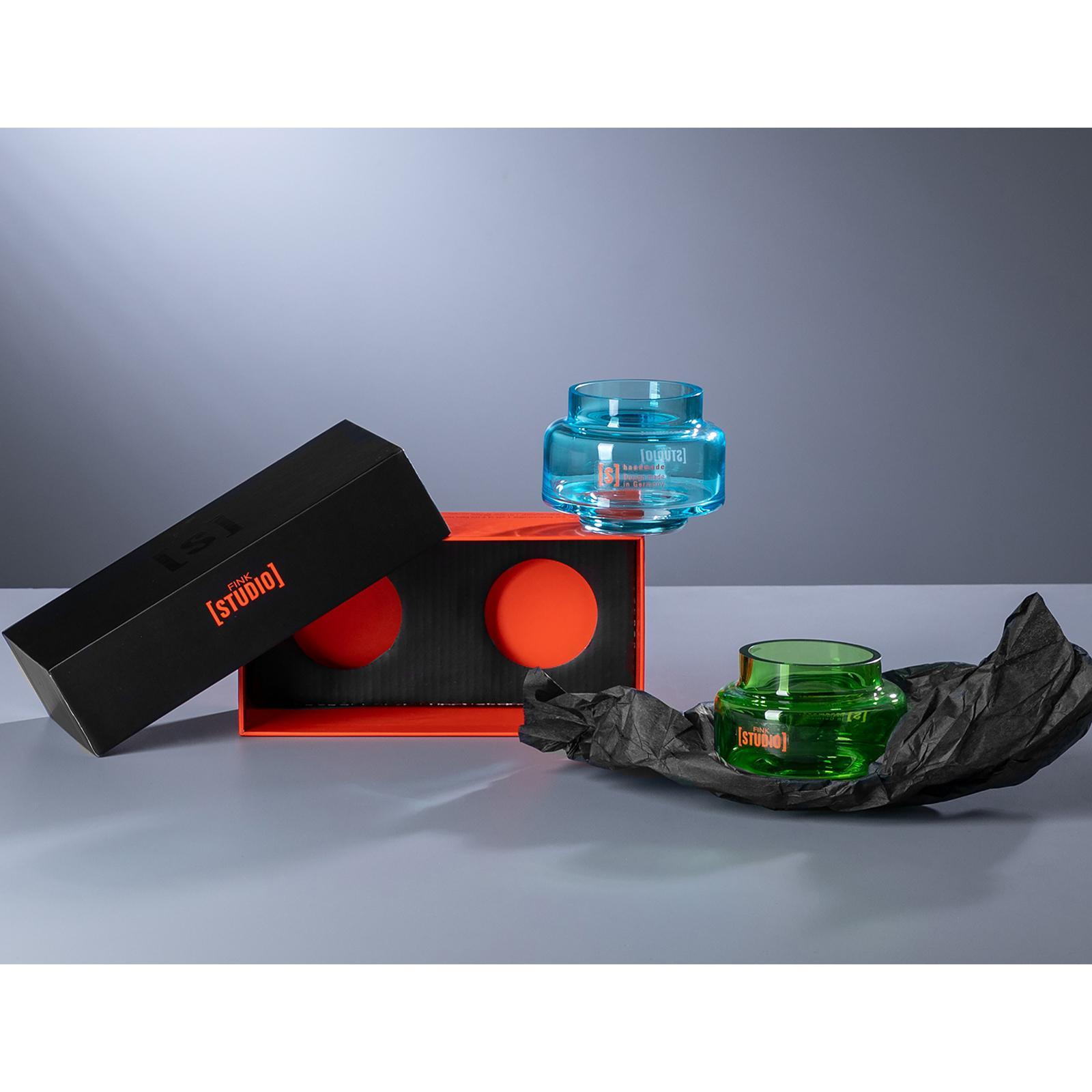 • Länge ca.: 10 cm • Breite ca.: 10 cm • Höhe ca.: 8 cm • Durchmesser ca.: 10 cm • Serie: Fink Studio • Kapazität: für 2 Teelichter Ø 6 cm • Material: Glas • Oberfläche Details: glatt • spülmaschinengeeignet: nein • Farbe: grün & türkis • Ausstattung: mit verjüngter Öffnung • Funktionalität: stapelbar • Form: rund • Dimension: klein • Look & Stil: modern • Setumfang: 2-teilig • Umgebungsnutzung: Für Außenbereich und Innenbereich • Anlass: Stimmungsvolle Alltags-Momente, Saisonale Deko, Wohnambiente • Nutzungsbereich: Sideboard, Fensterbank, Tischdekoration, Anrichte • Besonderheit: in Fink STUDIO Geschenkverpackung • Besonderheit I: mundgeblasen • Gewicht ca.: 0,48 Kg