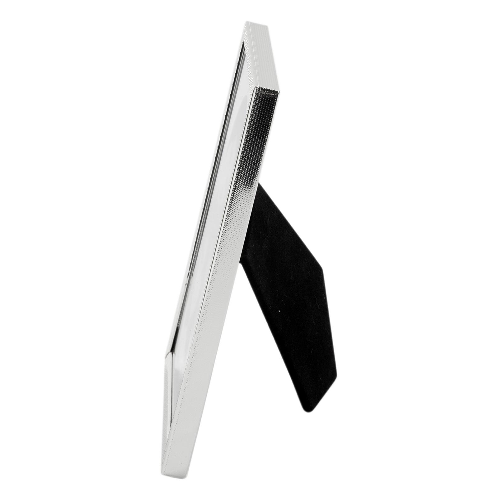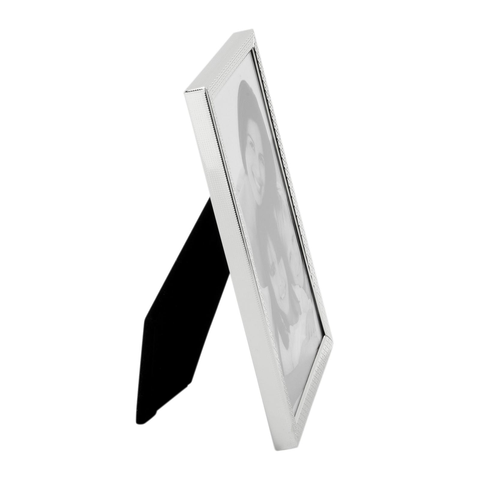 • Länge ca.: 1,4 cm • Breite ca.: 18,1 cm • Höhe ca.: 13 cm • Serie: Fink Living • Rahmenart: schmale Rahmenleiste • Rahmenbreite ca.: 18,1 cm • Rahmenhöhe ca.: 13 cm • Fotogröße: 13 x 18 cm • Ausführung: Einzelrahmen • Material: Metall • Material 1: Glas • Beschichtung: versilbert • Veredelung: anlaufgeschützt • Oberfläche: hochglänzend • Oberfläche Details: strukturiert • Farbe: silber • Rückansicht: Samtrücken • Art des Bildeinsatzes: Frontlader • Ausstattung: 1 Klemmbilderhaken • Ausstattung 1: mit Glasabdeckung • Platzierungsart: vertikal, horizontal hängbar & stehend • Form: rechteckig • Dimension: mittel • Umgebungsnutzung: Für Innenbereich • Anlass: Dekoration, Erinnerungen, Geschenk • Nutzungsbereich: Sideboard, Fensterbank, Anrichte, Beistelltisch, Wände • Gewicht ca.: 0,25 Kg