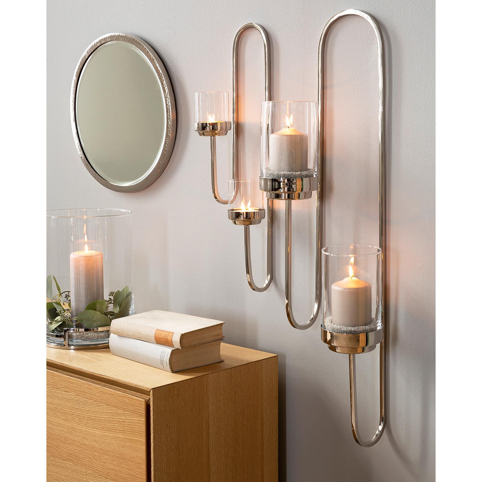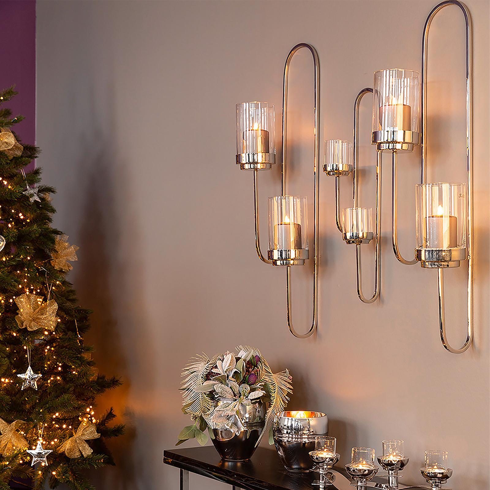 ✓ 60 cm hoher und 2-flammiger Edelstahl Wandleuchter - Teelichthalter als stilvolles Highlight für Wände ✓ Schwungvolles Design, die organische Linienführung verleiht dem Accessoire eine spielerische Eleganz ✓ Polierter Edelstahl - der edle Hochglanz sorgt für spiegelnde Reflexe und eine moderne Raumwirkung ✓ 2 Glaszylinder inklusive - schützt die Wand vor Ruß und lässt das Kerzenlicht besonders sanft erstrahlen ✓ Vielseitig einsetzbarer Kerzenhalter für Flur, Esszimmer, Wohnzimmer und als dekoratives Lichtobjekt
