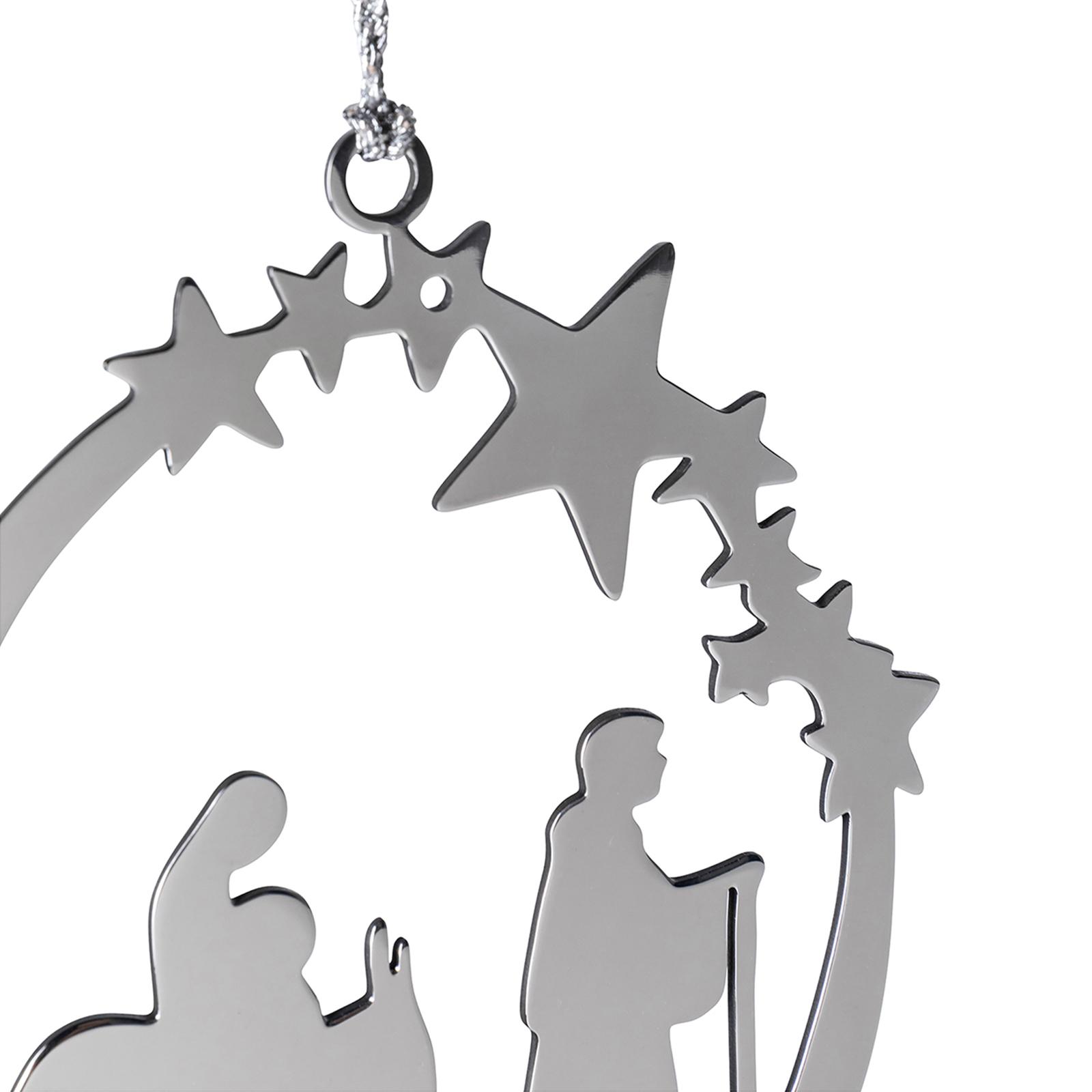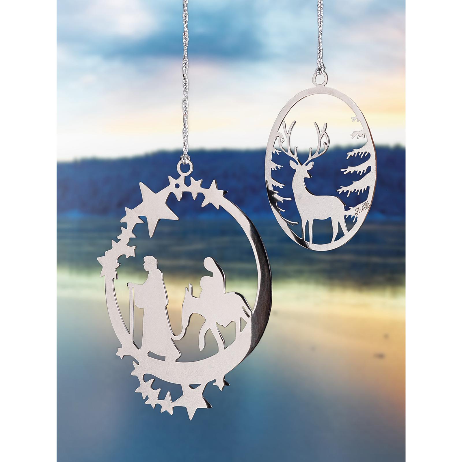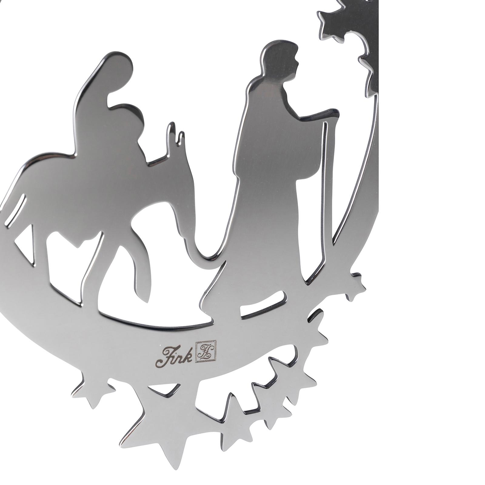 • Länge ca.: 11 cm • Breite ca.: 0,5 cm • Höhe ca.: 16 cm • Serie: Fink Living • Material: Edelstahl • Oberfläche: glänzend poliert • Oberfläche Details: glatt • Farbe: silber • Eigenschaft: traditionelle, aufwendige Handarbeit • Ausstattung: mit silberfarbener Kordel • Platzierungsart: zum Aufhängen • Form: oval • Dimension: groß • Motiv-Design: Weihnachten • Umgebungsnutzung: Für Außenbereich und Innenbereich • Anlass: Weihnachten, Nikolaus, Adventszeit • Nutzungsbereich: Fensterdeko, Türkränze, Geschenk, am Weihnachtsbaum