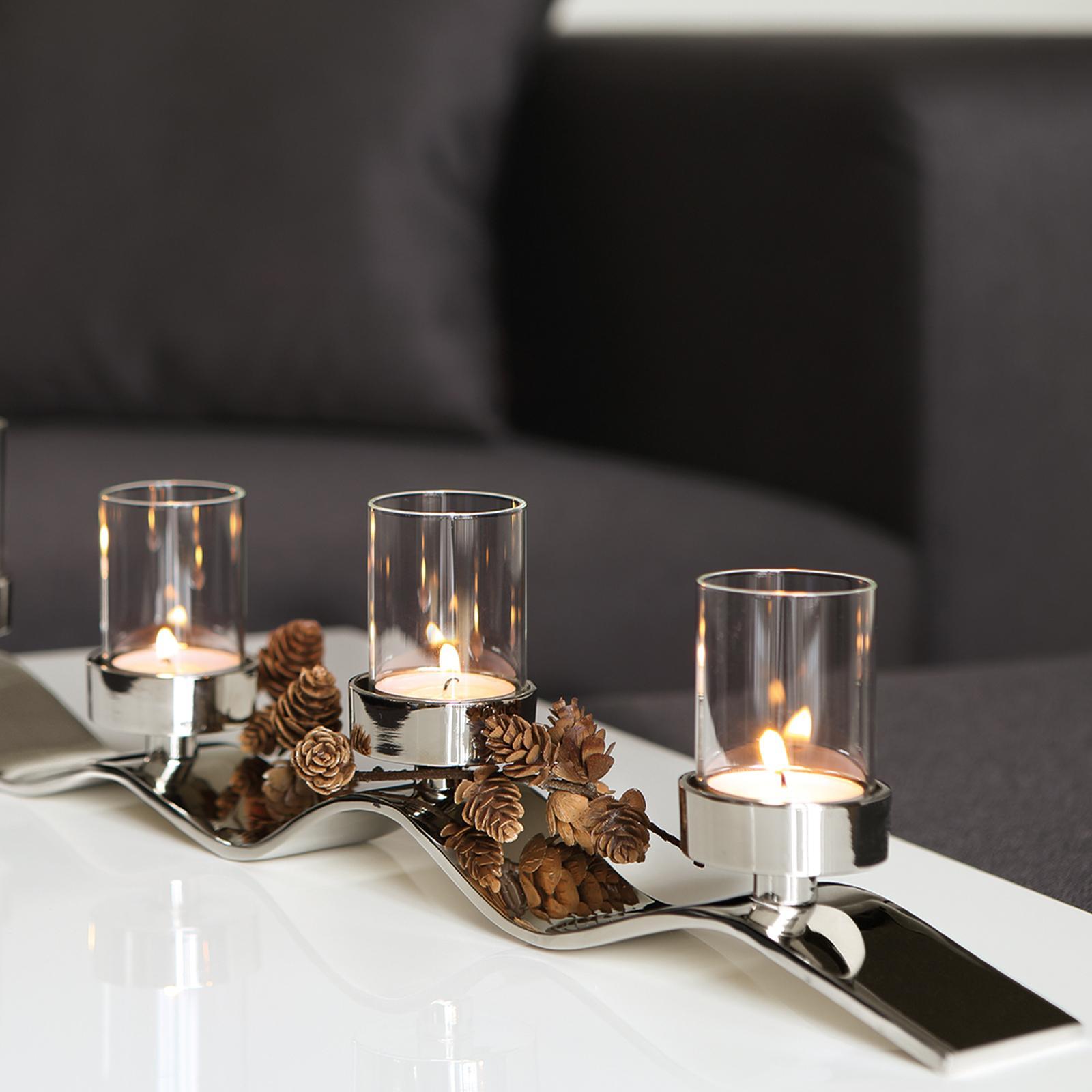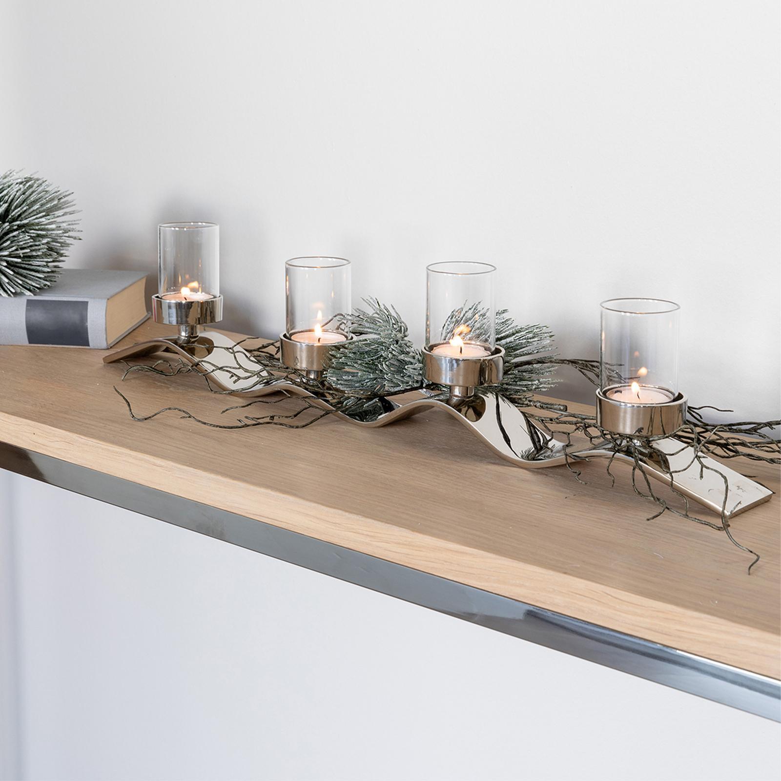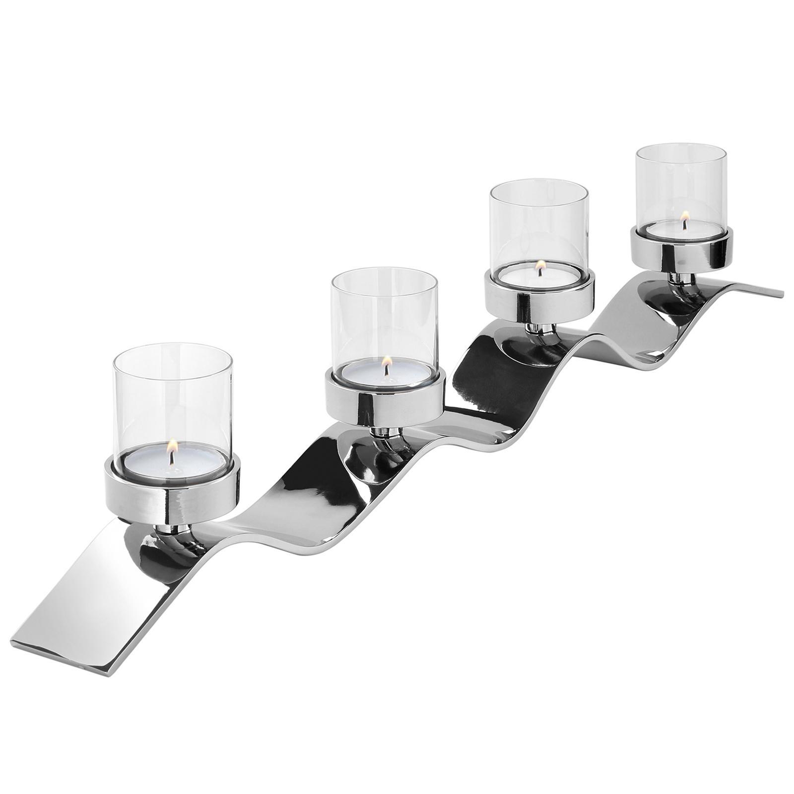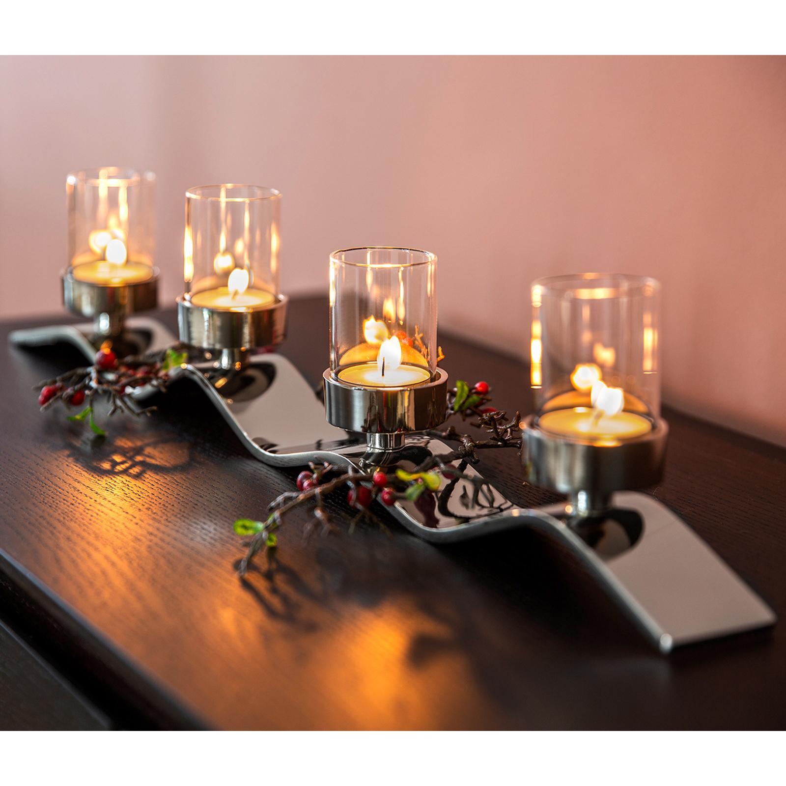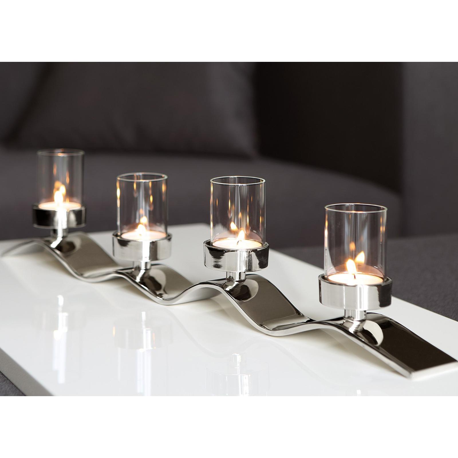 • Länge ca.: 54 cm • Breite ca.: 6 cm • Höhe ca.: 6 cm • Serie: Fink Living • Kapazität: für 4 Teelichter Ø 4 cm • Material: Aluminium • Veredelung: vernickelt • Oberfläche: glänzend poliert • Oberfläche Details: glatt • Farbe: silber • Eigenschaft: ohne Aufsatz-Glaszylinder • Form: wellenform • Dimension: groß • Look & Stil: modern • Umgebungsnutzung: Für Innenbereich • Anlass: Weihnachten, Advent, Feiern • Nutzungsbereich: Sideboard, Fensterbank, Tischdekoration, Anrichte • Nutzungsmöglichkeit: ganzjährig & als Adventskranz nutzbar • Gewicht ca.: 0,6 Kg