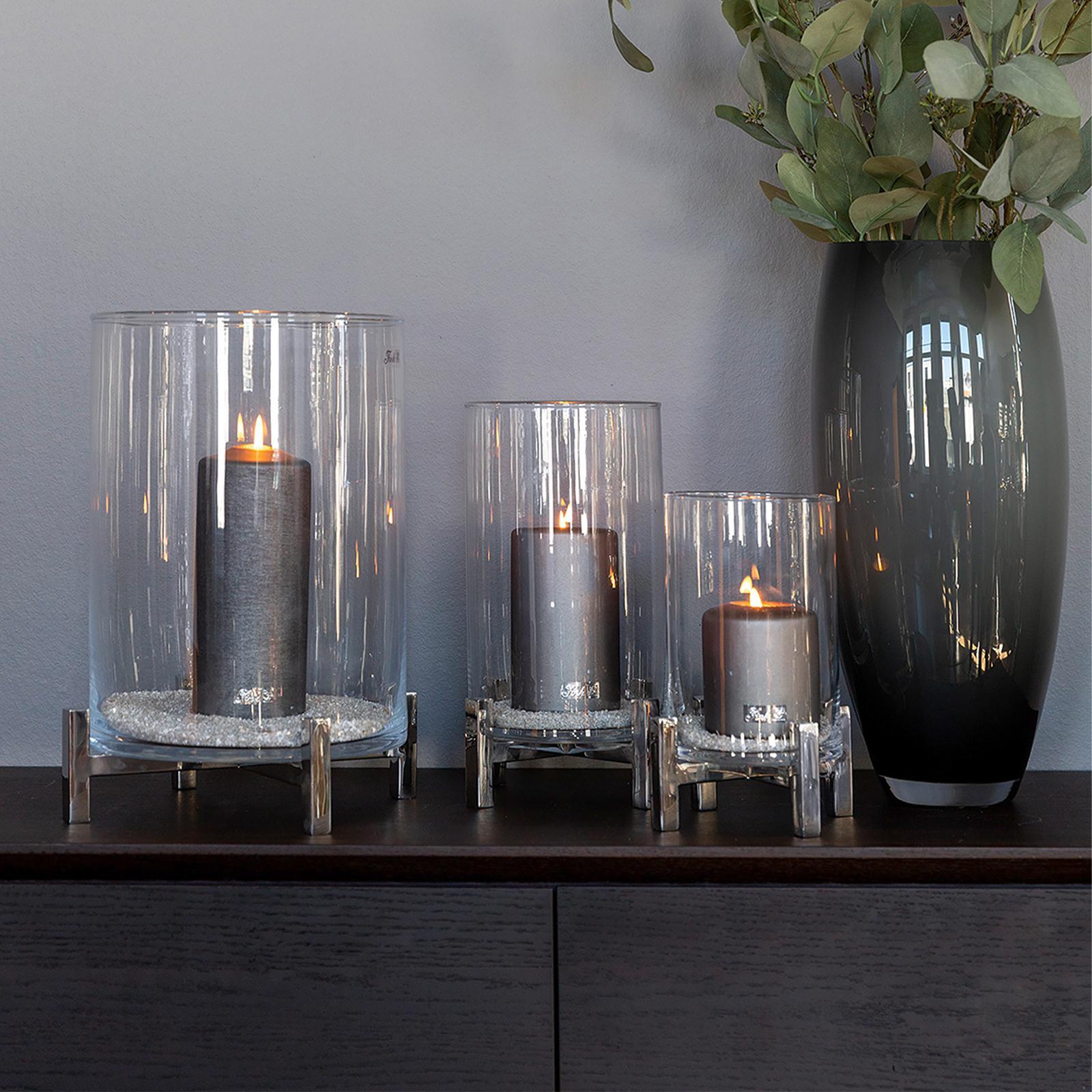 • Länge ca.: 18 cm • Breite ca.: 18 cm • Höhe ca.: 29 cm • Durchmesser ca.: 15 cm • Serie: Fink Living • Kapazität: für 1 Stumpenkerze • Material: Edelstahl • Material 1: Glas • Oberfläche: glänzend poliert • Oberfläche Details: glatt • Farbe: silber • Eigenschaft: mit Aufsatz-Glaszylinder • Ausstattung: mit Standfüße • Form: rund • Dimension: mittel • Umgebungsnutzung: Für Außenbereich und Innenbereich • Anlass: Saisonale & thematische Deko, Gartenabende, Geschenkidee • Nutzungsbereich: Balkon, Terrasse, Garten • Besonderheit: für LED Leuchten / Kerzen geeignet • Gewicht ca.: 0,17 Kg