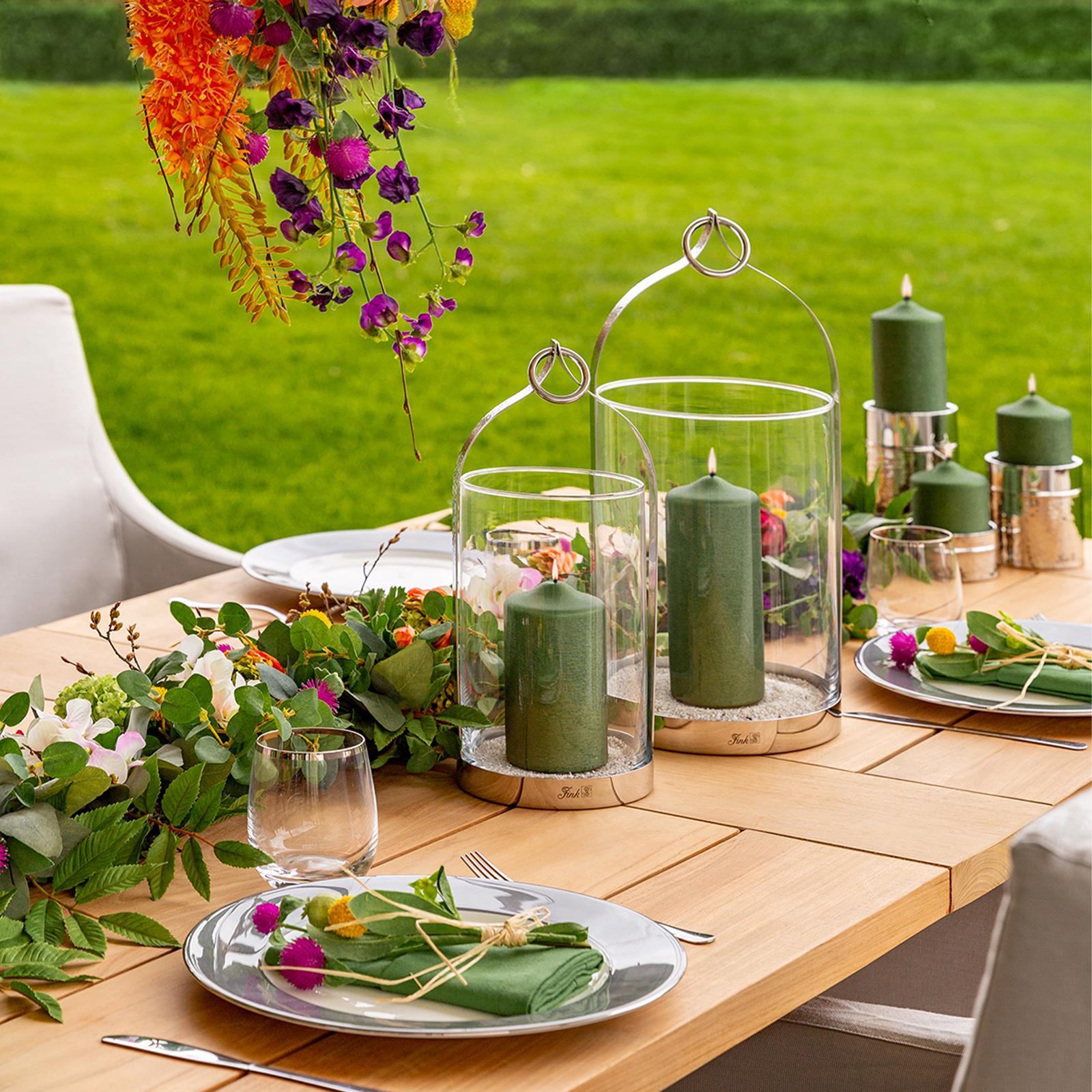 • Länge ca.: 15 cm • Breite ca.: 15 cm • Höhe ca.: 36 cm • Durchmesser ca.: 15 cm • Serie: Fink Living • Kapazität: für 1 Stumpenkerze • Material: Edelstahl • Material 1: Glas • Oberfläche: glänzend poliert • Oberfläche Details: glatt & gehämmert • Farbe: silber • Eigenschaft: mit Aufsatz-Glaszylinder • Ausstattung: mit Aufhänge-Ring • Form: rund • Dimension: mittel • Umgebungsnutzung: Für Außenbereich und Innenbereich • Anlass: Saisonale & thematische Deko, Gartenabende, Geschenkidee • Nutzungsbereich: Sideboard, Fensterbank, Tischdekoration, Anrichte • Besonderheit: für LED Leuchten / Kerzen geeignet