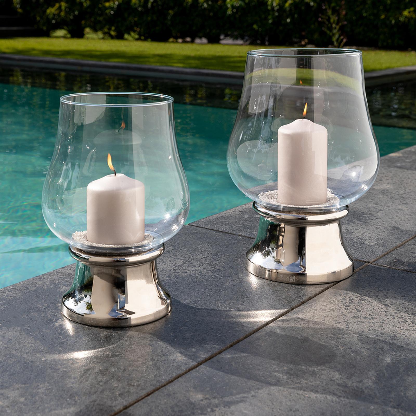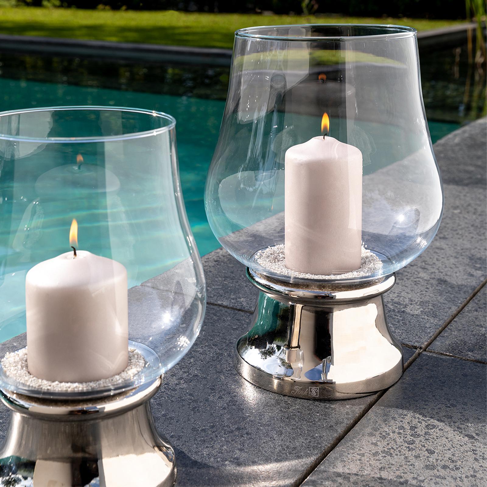 • Länge ca.: 25,5 cm • Breite ca.: 25,5 cm • Höhe ca.: 36,5 cm • Durchmesser ca.: 25,5 cm • Serie: Fink Living • Kapazität: für 1 Stumpenkerze • Material: Aluminium • Material 1: Edelstahl-Glas • Veredelung: vernickelt • Oberfläche: glänzend poliert • Oberfläche Details: glatt • Farbe: silber • Eigenschaft: mit Aufsatz-Glaszylinder • Ausstattung: mit Standfuß • Form: tulpenförmig • Dimension: groß • Umgebungsnutzung: Für Innenbereich • Anlass: Saisonale & thematische Deko, Gartenabende, Geschenkidee • Nutzungsbereich: Sideboard, Fensterbank, Tischdekoration, Anrichte • Besonderheit: für LED Leuchten / Kerzen geeignet