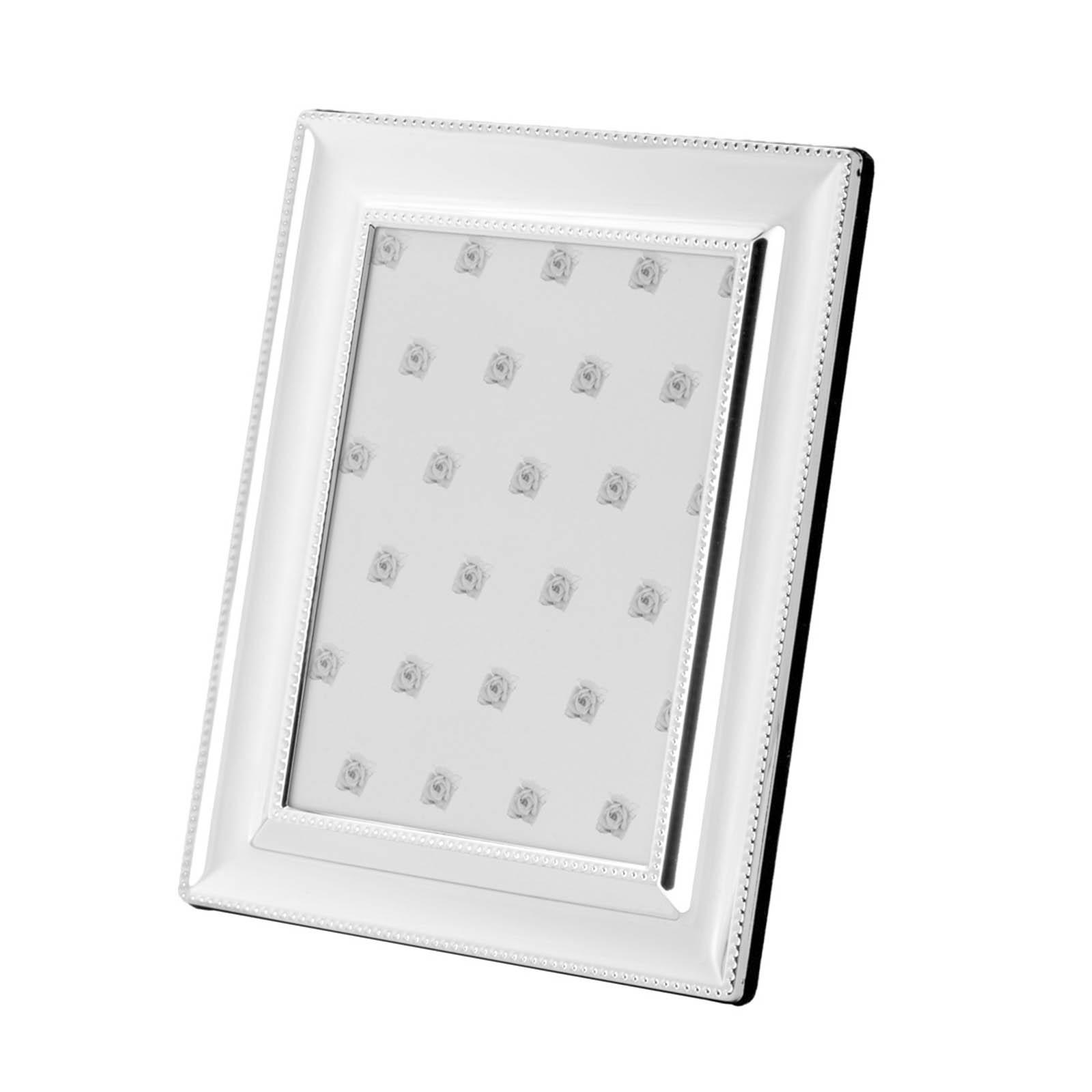 • Länge ca.: 18.0 cm • Breite ca.: 13.0 cm • Höhe ca.: 18.0 cm • Rahmenart: breite Rahmenleiste • Fotogröße: 13 x 18 cm • Kapazität: für 1 Foto • Ausführung: Einzelrahmen • Material: Metall • Beschichtung: versilbert • Veredelung: anlaufgeschützt • Oberfläche: glatt poliert • Oberfläche Details: mit Perlrand • spülmaschinengeeignet: nein • Farbe: silber • Rückansicht: Samtrückwand • Art des Bildeinsatzes: Rücklader • Ausstattung: Glasscheibe • Funktionalität: Zum Einrahmen und Präsentieren von Bildern • Platzierungsart: Nur zum Aufstellen (hoch & quer) • Form: quadratisch • Dimension: mittel • Look & Stil: Klassisch, elegant, stilvoll, dekorativ, zeitlos • Umgebungsnutzung: Nur für Innenbereich • Anlass: Für Hochzeit, Taufe, Jubiläum, Geschenk, Familienfeier • Nutzungsbereich: Wohnzimmer, Regal, Nachttisch, Schreibtisch, Kommode, Büro • Nutzungsmöglichkeit: Fotos einrahmen, Erinnerungen zeigen, Dekoration ergänzen