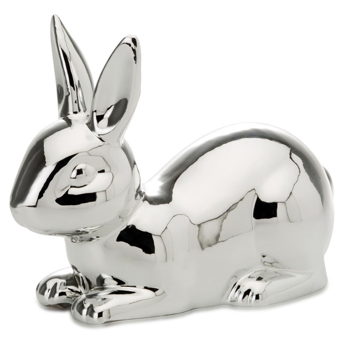 • Länge ca.: 18 cm • Breite ca.: 8.8 cm • Höhe ca.: 14 cm • Material: Porzellan • Beschichtung: galvanisiert • Oberfläche: glatt poliert, glänzend • spülmaschinengeeignet: nein • Farbe: silber • Funktionalität: Zum Dekorieren in der Osterzeit • Platzierungsart: Zum Aufstellen • Form: figürlich • Dimension: mittelgroß • Motiv: Hase • Motiv-Design: liegend mit aufgestellten Ohren • Symbolik: Symbol für Ruhe, Achtsamkeit & einen neuen Anfang • Look & Stil: Gelassen, natürlich, fein, achtsam, symbolträchtig • Umgebungsnutzung: Für Innenbereich und geschützten Außenbereich • Anlass: Für Geschenkidee, Dekozweck, Jahreszeit, Präsent, Feier • Nutzungsbereich: Sideboard, Fensterbank, Tischfläche, Empfang, Verkaufsraum • Nutzungsmöglichkeit: Figur aufstellen, Fläche gestalten, Blickrichtung lenken • Verwendungshinweis: nur zur Dekoration geeignet - kein Kinderspielzeug • Gewicht ca.: 0,449 Kg