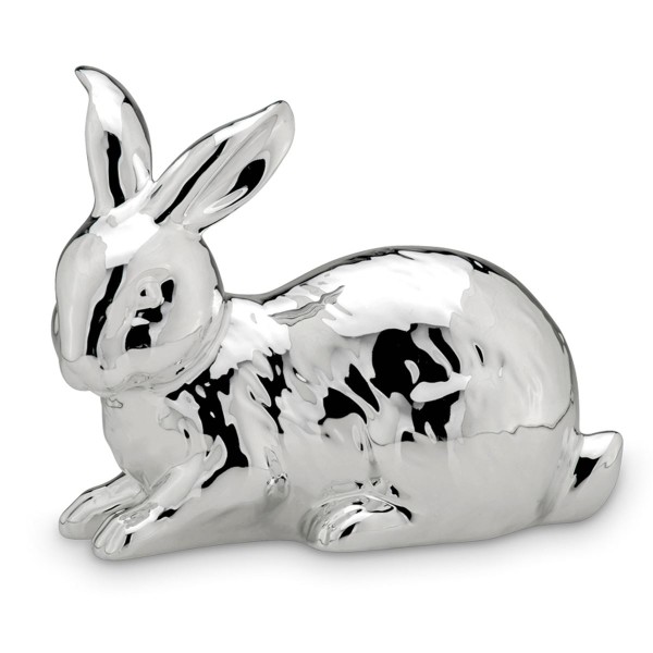 ✓ Silberner großer liegender Deko-Hase aus Porzellan in glatt polierter spiegelnder Silberglanz-Optik ✓ 18.5 cm langer Silberdeko-Hase in hockender Position als Hasenskulptur und festliche Osterdeko ✓ Ganzjährig zu allen Stilen dekorativ und aufstellbar auf der Kommode, Tischkultur und Fensterbank ✓ Modernes zeitloses Silberdesign und gerade zum Osterfesttag besonderer silberner Eyecatcher ✓ Ein originelles Geschenk zu Ostern und zum Geburtstag für echte Hasenfans und Figurensammler