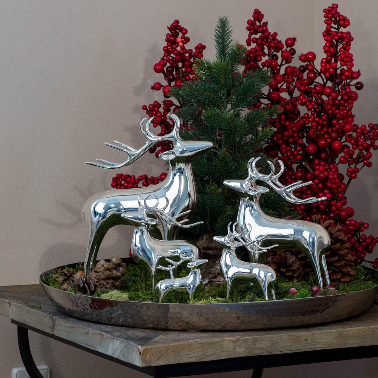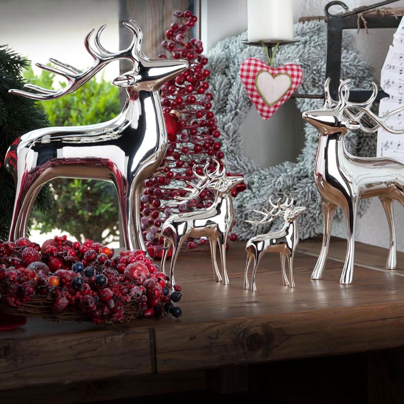 Schaffen Sie ein festliches Ambiente: Platzieren Sie die silberglänzende Rentierfigur als zentralen Punkt Ihrer Weihnachtsdekoration und bringen Sie so festlichen Glanz in Ihr Wohnzimmer.