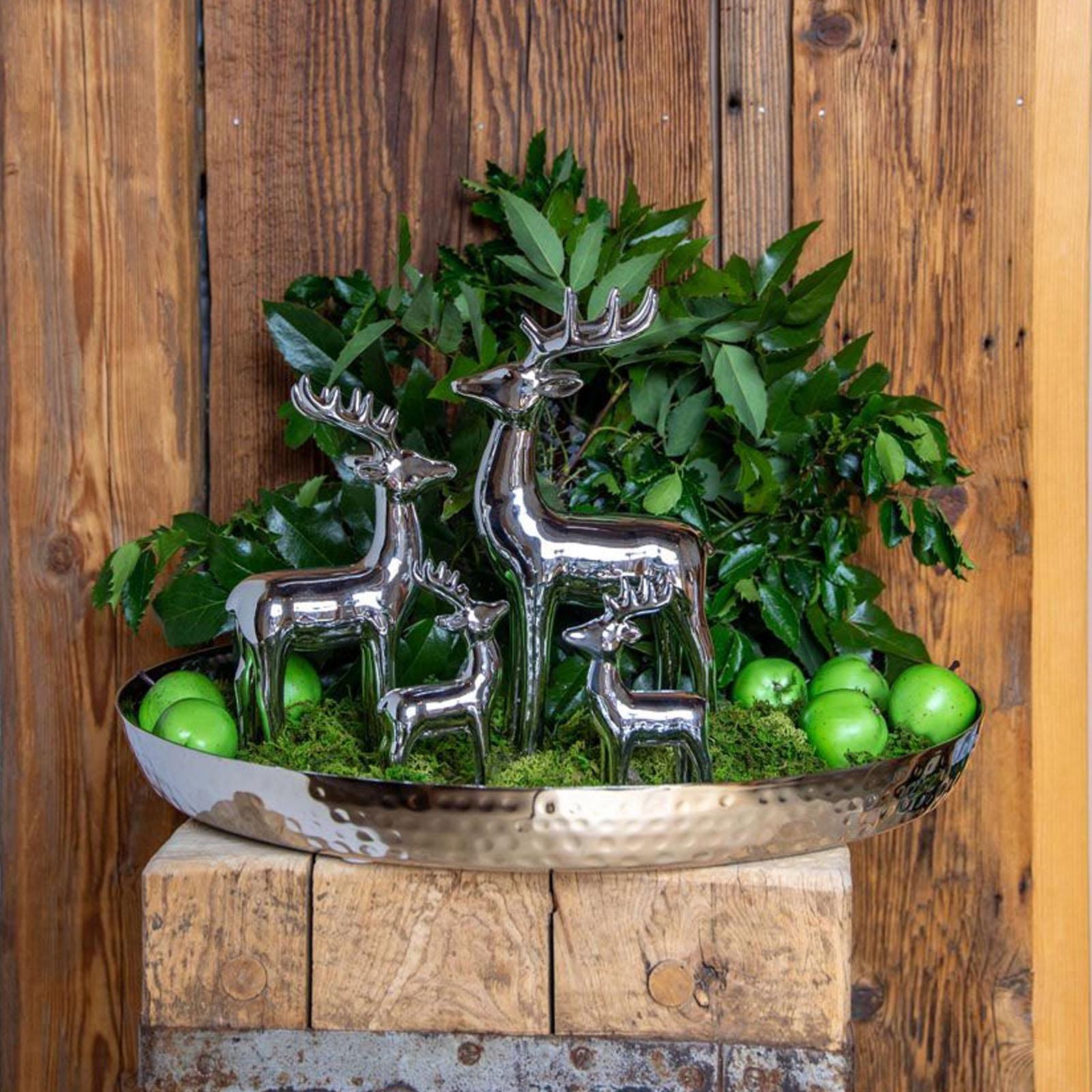 Festliche Tischdekoration: Platzieren Sie die silberne Rentier-Figur in der Mitte Ihres Esszimmertisches, um ein festliches Highlight zu setzen. Kombinieren Sie sie mit weißen Kerzen und Tannenzweigen, um eine gemütliche und elegante Atmosphäre für Ihre Gäste zu schaffen.