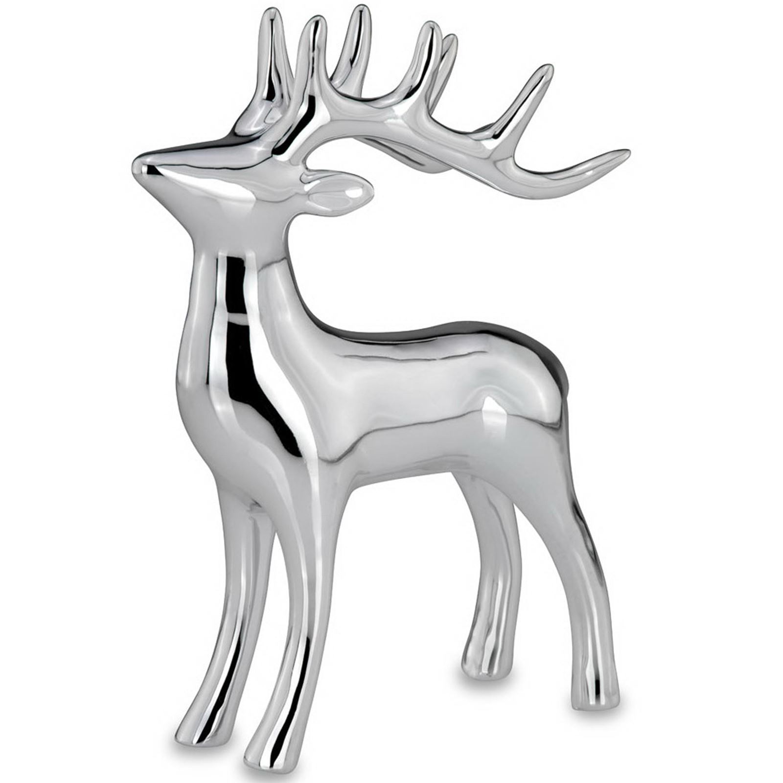 • Länge ca.: 13.8 cm • Breite ca.: 6.3 cm • Höhe ca.: 19.5 cm • Material: Porzellan • Beschichtung: galvanisiert • Oberfläche: glatt poliert, glänzend • spülmaschinengeeignet: nein • Farbe: silber • Funktionalität: Zum Dekorieren von Tisch und Raum • Platzierungsart: zum Aufstellen • Form: figürlich • Dimension: groß • Motiv: Rentier • Motiv-Design: stehend mit erhobenem Kopf geradeaus • Symbolik: Symbol für Stärke, Weisheit & klare innere Ausrichtung • Look & Stil: Stilisiert geformt, klar akzentuiert & elegant inszeniert • Umgebungsnutzung: Für Innenbereich und geschützten Außenbereich • Anlass: Für Raumgestaltung, Winterzeit, Empfang, Saison, Dekozweck • Nutzungsbereich: Tisch, Fensterbrett, Eingang, Dekonische, Empfangsbereich • Nutzungsmöglichkeit: Deko platzieren, Stimmung erzeugen, Wohnambiente stärken • Gewicht ca.: 0,298 Kg