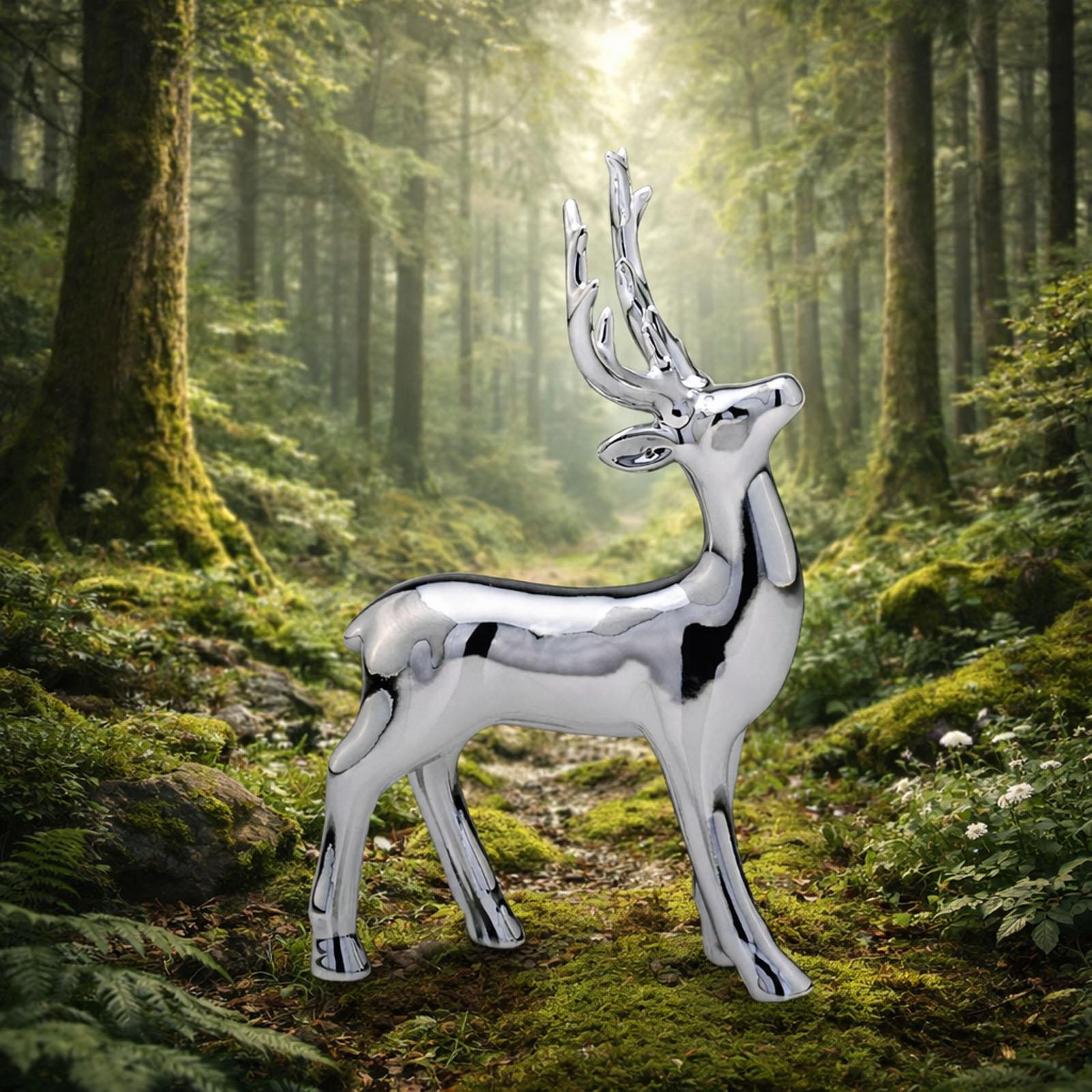 • Länge ca.: 11.8 cm • Breite ca.: 6.8 cm • Höhe ca.: 19.5 cm • Material: Porzellan • Beschichtung: galvanisiert • Oberfläche: glatt poliert, glänzend • spülmaschinengeeignet: nein • Farbe: silber • Funktionalität: Zum Dekorieren von Tisch und Raum • Platzierungsart: zum Aufstellen • Form: figürlich • Dimension: groß • Motiv: Rentier • Motiv-Design: stehend Kopf leicht nach oben • Symbolik: Symbol für Weitblick, innere Stärke & Balance • Look & Stil: Puristisch, ausdrucksstark, ruhig, formklar, winterlich • Umgebungsnutzung: Für Innenbereich und geschützten Außenbereich • Anlass: Für Raumgestaltung, Winterzeit, Empfang, Saison, Dekozweck • Nutzungsbereich: Tisch, Fensterbrett, Eingang, Dekonische, Empfangsbereich • Nutzungsmöglichkeit: Deko platzieren, Stimmung erzeugen, Wohnambiente stärken • Verwendungshinweis: nur zur Dekoration geeignet - kein Kinderspielzeug • Gewicht ca.: 0,277 Kg