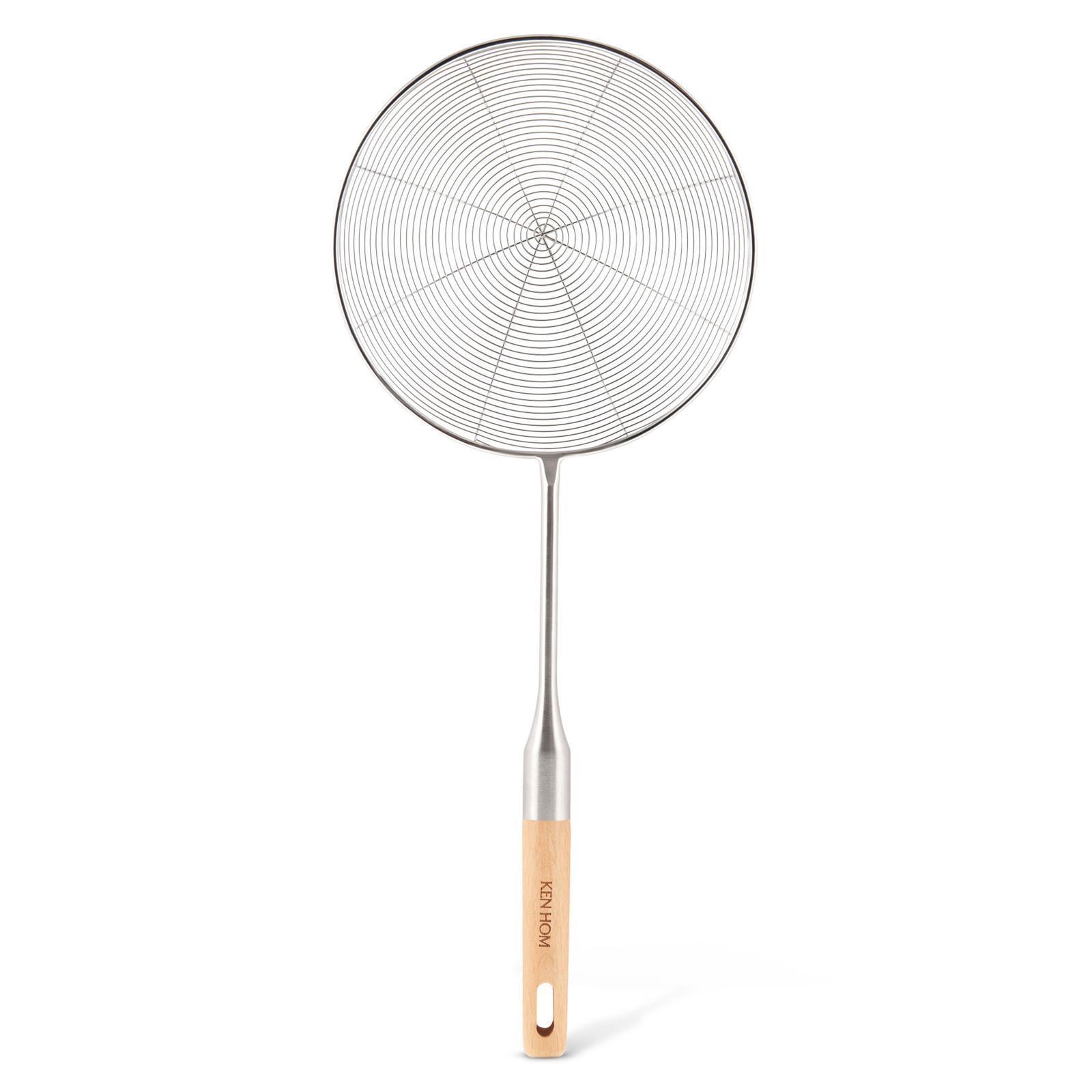 "Viele Leute fragen mich, was mein meistgenutzter Gegenstand in der Küche ist. Meine Antwort ist immer die gleiche - der Wok - einfach, weil das wirklich alles ist, was Sie brauchen." - zitiert nach Ken Hom, der Meister der asiatischen Küche. Ken Hom gilt als einer der weltweit führenden Experten für authentische asiatische Küche. Jede einzelne Wokpfanne aus dem Sortiment wird von Ken Hom persönlich erprobt und auch getestet. Dieses große leichte unbeschichtete Wok Set aus Kohlenstoffstahl bietet eine hervorragende Wärmeleitung und eignet sich daher optimal für hohe Hitze sowie schnelles Kochen - darauf kommt es beim Braten oder Kochen unter Rühren an. Dank der gelöcherten Edelstahl Schaumkelle haben Sie die Möglichkeit Fleisch, Kartoffeln, Klöße, Gemüse oder frittierte Speisen aus der heißen Garflüssigkeit des Woks oder eines Topfes zu heben, um das Gekochte abtropfen zu lassen. Der große Schaumlöffel Ø 19.2 cm ist ein unverzichtbares Küchenutensil und hilft Ihnen dabei, den Schaum von Suppen, Brühen, gekochtem Fleisch oder Soßen zu entfernen.