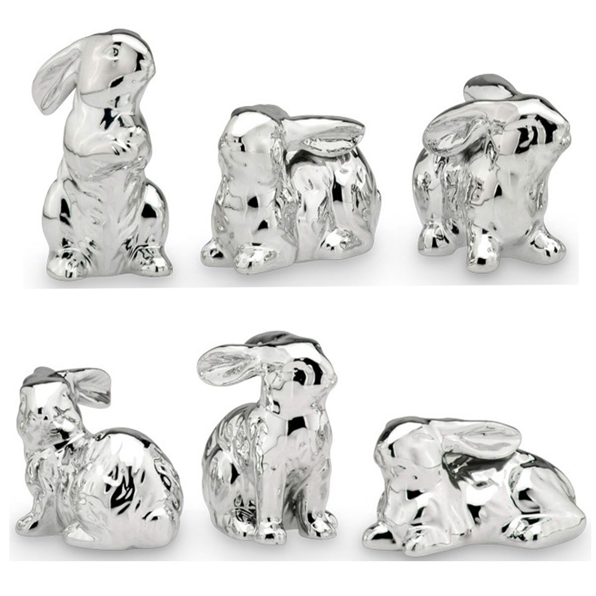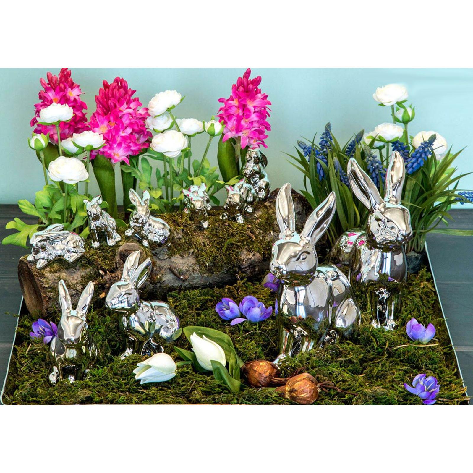 ✓ Silbernes kleines 6er Deko-Hasen Set aus Porzellan in glatt polierter spiegelnder Silberglanz-Optik ✓ Verspielten 6-tlg. Silberdeko-Hasenkinder, tobende Hasenbande als Hasenskulpturen und Osterdeko ✓ Ganzjährig zu allen Stilen dekorativ und aufstellbar auf der Kommode, Tischkultur und Fensterbank ✓ Modernes zeitloses Silberdesign und gerade zum Osterfesttag besonderer silberner Eyecatcher ✓ Ein originelles Geschenk zu Ostern und zum Geburtstag für echte Hasenfans und Figurensammler