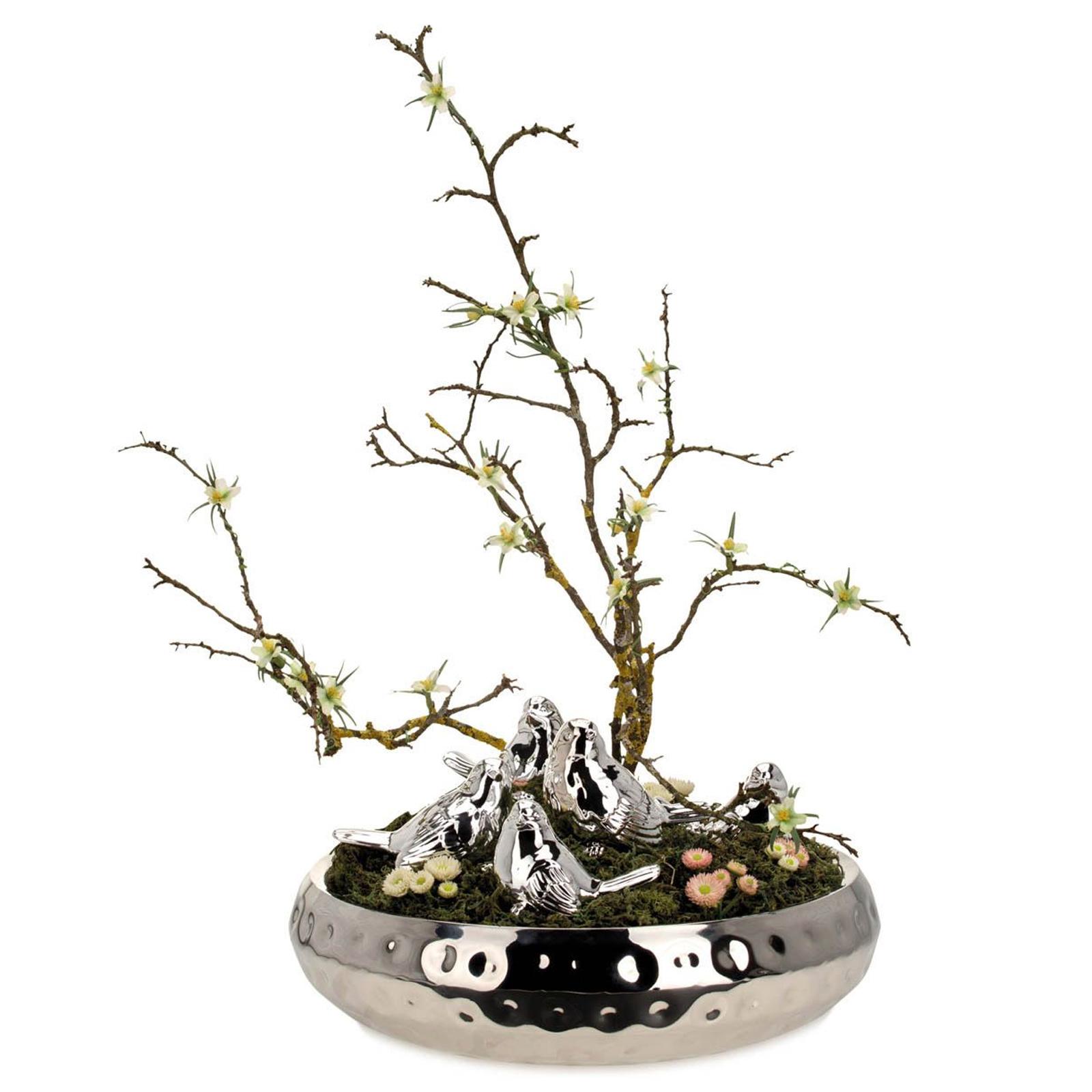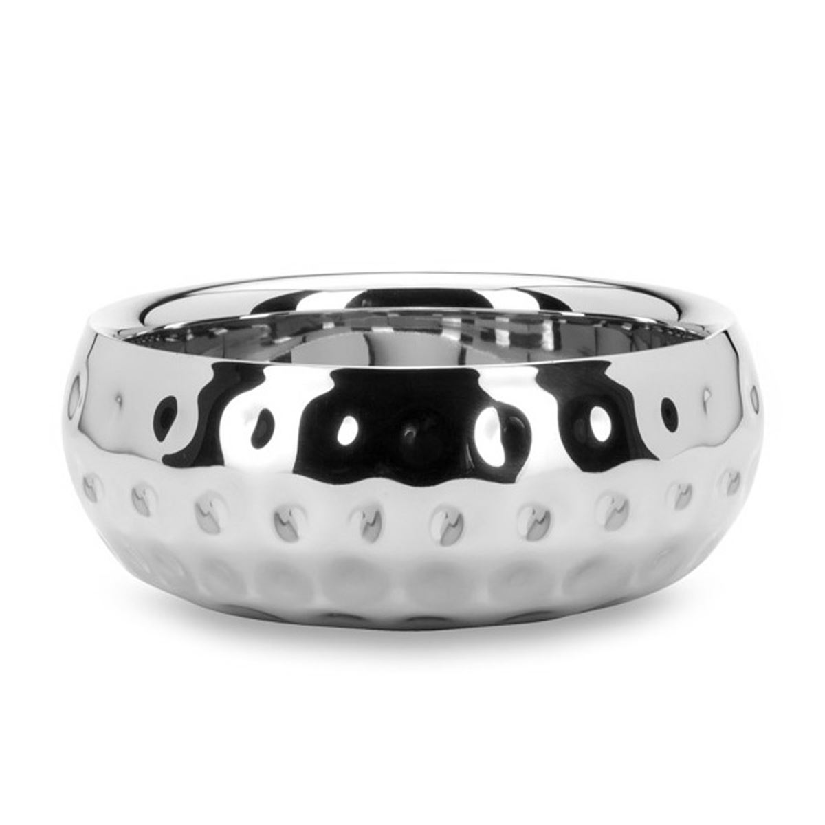 • Höhe ca.: 9 cm • Durchmesser ca.: 24 cm • Innenmaß ca.: Ø 22 cm • Randbreite ca.: 1 cm • Volumen: 2000 ml • Ausführung: hoch • Material: Edelstahl • Oberfläche: glatt poliert • Oberfläche Details: Außenseite gehämmert • spülmaschinengeeignet: ja • Farbe: silber • Eigenschaft: ohne Griffe - ohne Füße • Ausstattung: hoher Rand • Funktionalität: Zum Schmücken und Gestalten von Raum und Tisch • Platzierungsart: zum Aufstellen • Form: rund • Dimension: klein • Symbolik: Symbol für Raumgefühl, Klarheit & stilvolle Akzentsetzung • Look & Stil: Modern, klar, strukturiert, akzentuierend, puristisch • Umgebungsnutzung: Für Innenbereich und geschützten Außenbereich • Anlass: Für Dekoration, Wohnen, Präsent, Geschenk, Ambiente, Stil • Nutzungsbereich: Kommode, Fensterbank, Sideboard, Flur, Vitrine, Empfang • Nutzungsmöglichkeit: Deko arrangieren, Objekte präsentieren, Akzente setzen • Gewicht ca.: 1,039 Kg