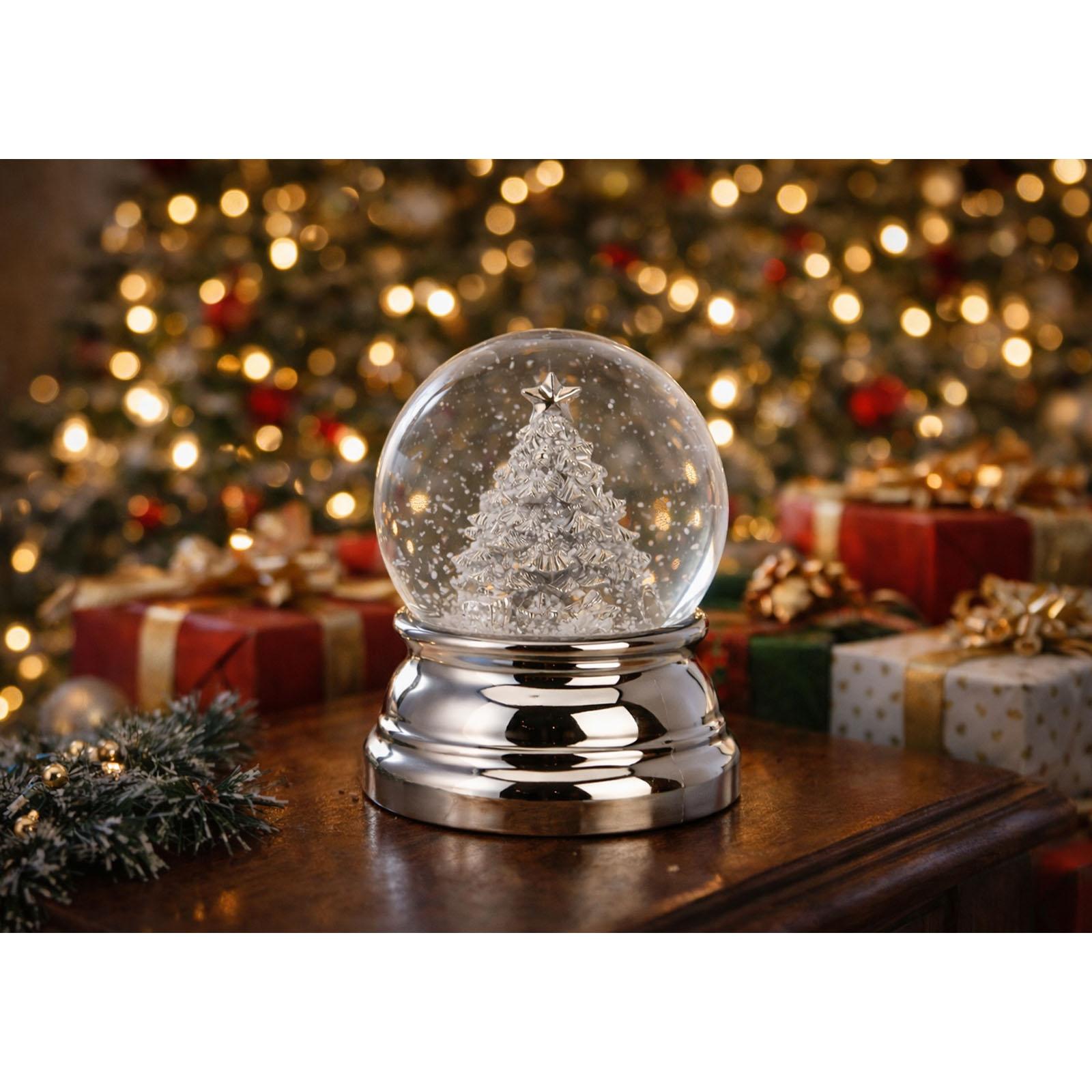 Festliches Geschenk für Kinder und Erwachsene: Diese versilberte Schneekugel mit Weihnachtsbaum ist das perfekte Geschenk für Sammler, Kinder oder Weihnachtliebhaber, die ihre Dekoration um ein besonderes Stück erweitern möchten.