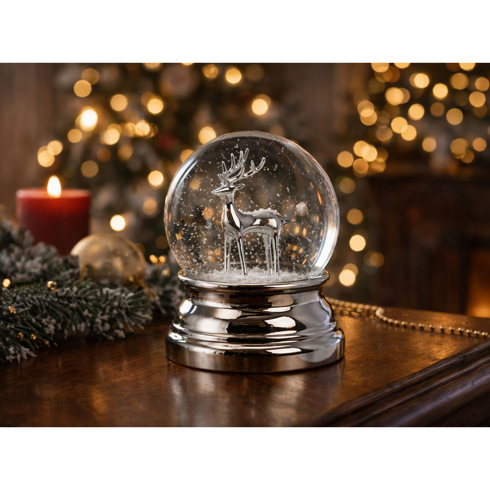 Erschaffen Sie mit dieser Rentier-Schneekugel eine verträumte Weihnachtswelt und lassen Sie sich von ihrem zauberhaften Charme in den Bann ziehen.