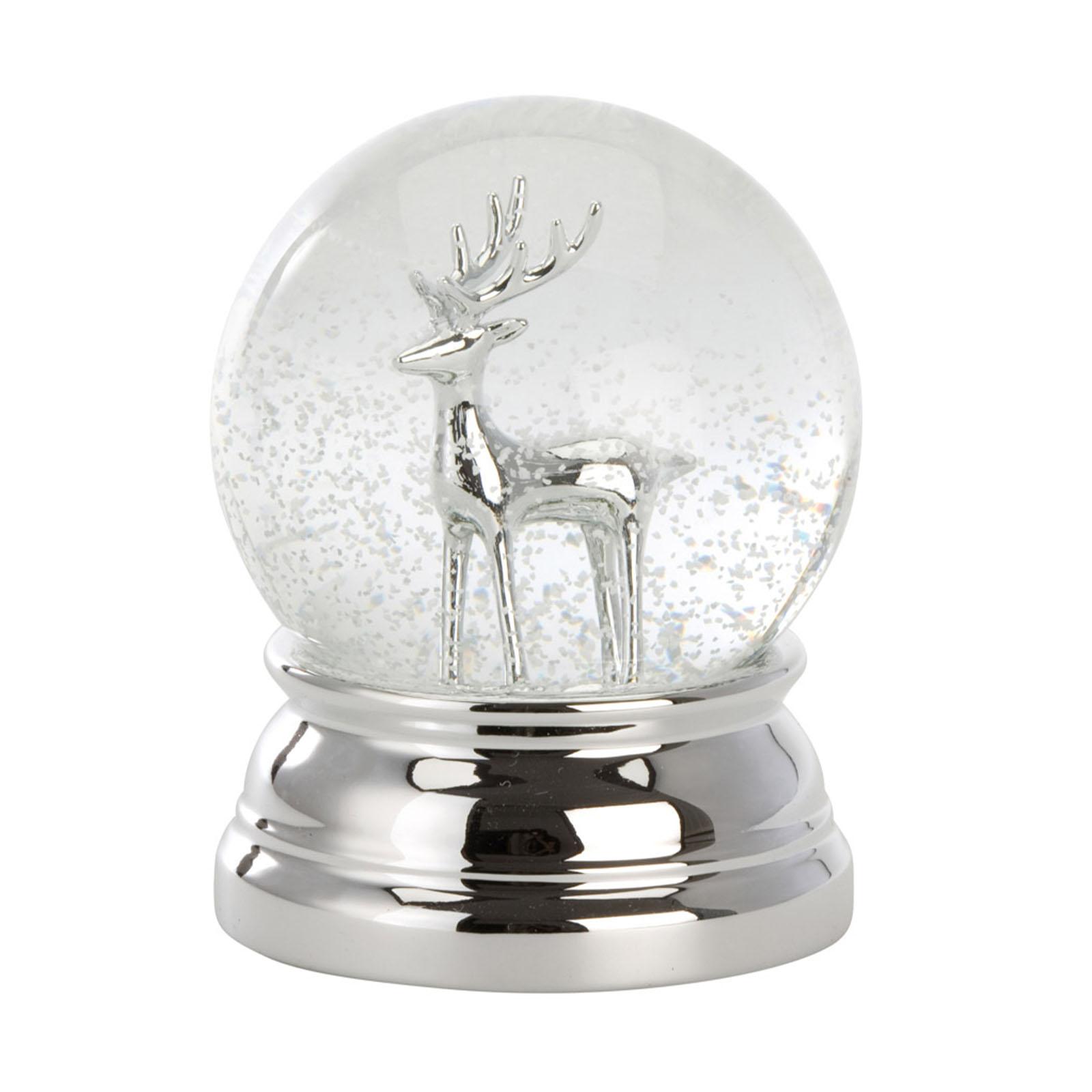 • Höhe ca.: 10 cm • Durchmesser ca.: 8 cm • Material: Metall • Beschichtung: versilbert • Veredelung: anlaufgeschützt • Oberfläche: glatt poliert • spülmaschinengeeignet: nein • Farbe: silber • Eigenschaft: schüttelbar • Ausstattung: runder versilberter Standfuß • Funktionalität: Zum Dekorieren und Schütteln erzeugt Schneeeffekt • Platzierungsart: zum Aufstellen • Form: rund • Dimension: mittelgroß • Motiv: Rentier • Motiv-Design: silbern mit stehend Blick nach vorn • Symbolik: Symbol für Weihnachtszauber, innere Ruhe & stille Stärke • Look & Stil: Glanzvoll, ruhig, festlich, anmutig, märchenhaft • Umgebungsnutzung: Nur für Innenbereich • Anlass: Für Winterzeit, Weihnachtsstimmung, Deko, Geschenk, Zuhause • Nutzungsbereich: Fensterbank, Kinderzimmer, Kommode, Regal, Vitrine, Empfang • Nutzungsmöglichkeit: Schütteln, Objekt präsentieren, Fläche dekorativ ergänzen • Verbraucherhinweise: nur zur Dekoration geeignet - kein Kinderspielzeug • Gewicht ca.: 0,47 Kg