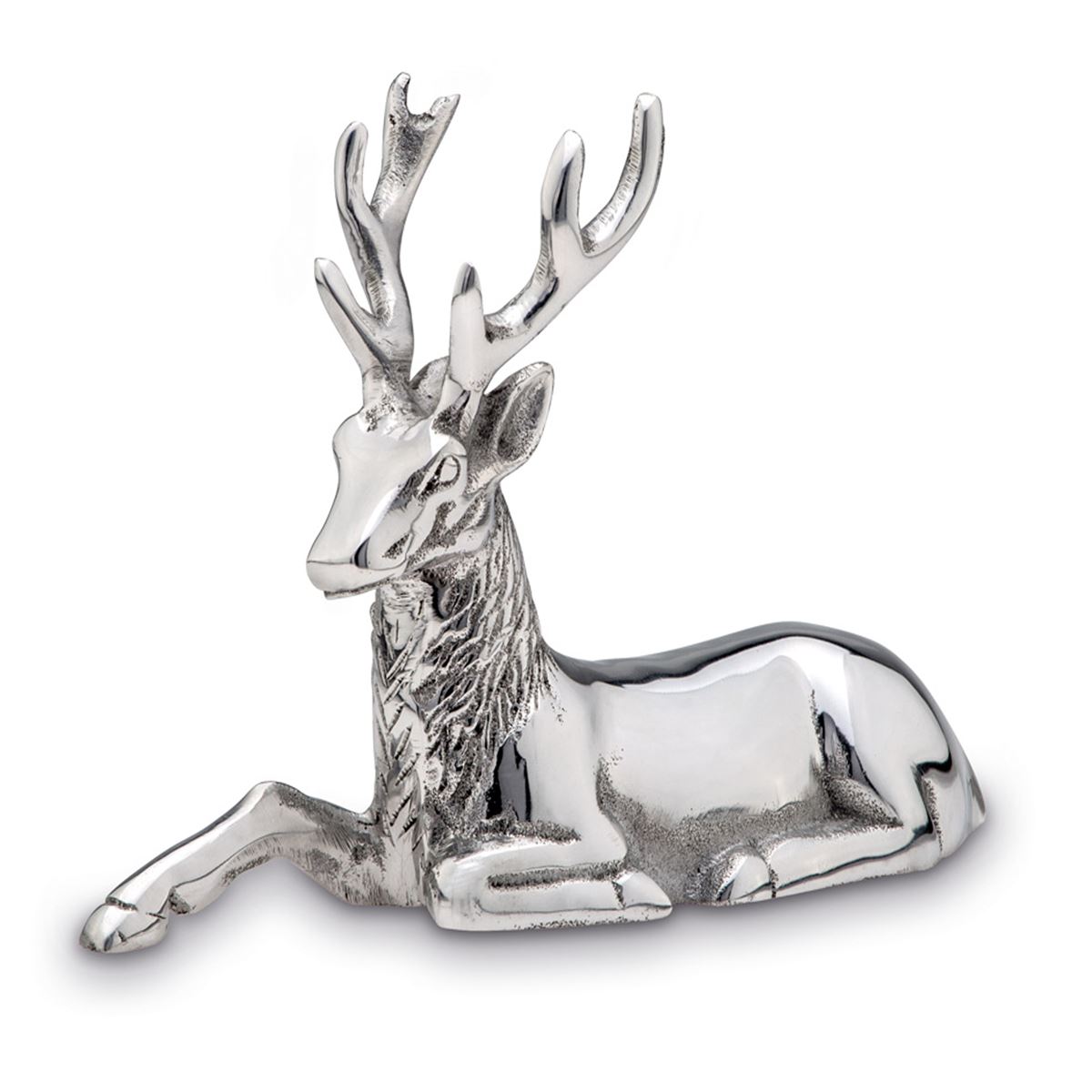 • Länge ca.: 22 cm • Breite ca.: 7 cm • Höhe ca.: 15 cm • Material: Aluminium • Oberfläche: glatt poliert • Oberfläche Details: ausgearbeitete Fellsilhouette am Hals • spülmaschinengeeignet: nein • Farbe: silber • Funktionalität: Zum Dekorieren von Tisch und Raum • Platzierungsart: Zum Aufstellen • Form: realistisch • Dimension: mittelgroß • Motiv: Hirsch • Motiv-Design: liegend mit Blick nach vorn • Symbolik: Symbol für Stärke, Würde & naturnahe Ruhe • Look & Stil: Anmutig, edel, ruhig, naturbezogen, symbolträchtig • Umgebungsnutzung: Nur für Innenbereich • Anlass: Für Raumdeko, Winterzeit, Wohnen, Ambiente, Stil, Präsent • Nutzungsbereich: Sideboard, Fensterbank, Tisch, Regal, Empfang, Wohnbereich • Nutzungsmöglichkeit: Dekorativ platzieren, Raum verschönern, Blickfang erzeugen • Verwendungshinweis: nur zur Dekoration geeignet - kein Kinderspielzeug • Gewicht ca.: 0,579 Kg