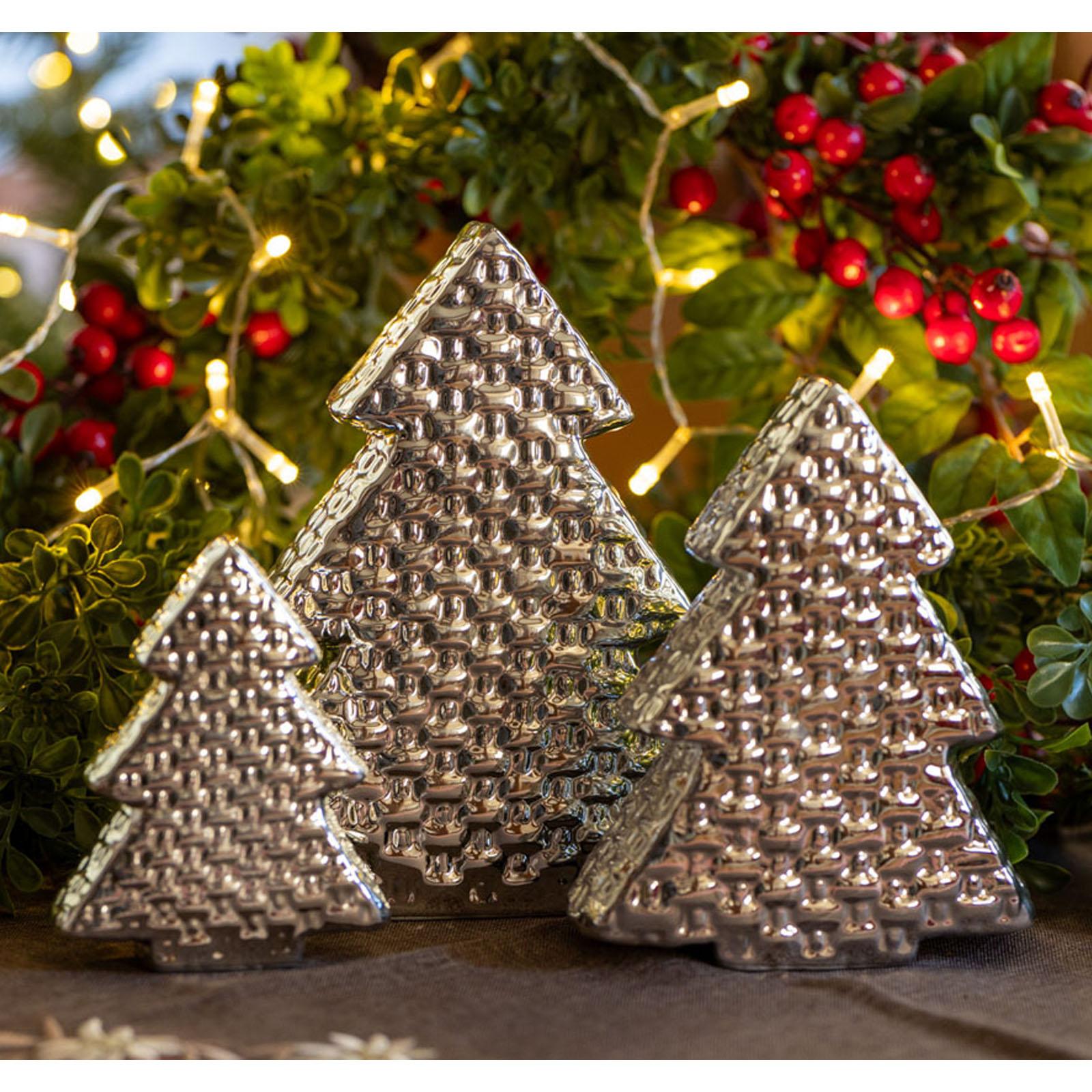 ✓ Deko-Tannenbaum aus Porzellan - silberfarben, strukturiert und harmonisch gestaltet ✓ Stilvolles Dekoobjekt in klarer Baumform - bringt sanfte Ruhe in Ihre Winterdekoration ✓ Glänzender Porzellanbaum mit feiner Webstruktur - dezent, modern und festlich zugleich ✓ Dekoration mit symbolischer Kraft - für stimmige Akzente in Ihrer persönlichen Deko-Welt ✓ Wohnaccessoire mit ruhiger Ausstrahlung - ideal zur Gestaltung saisonaler Blickpunkte
