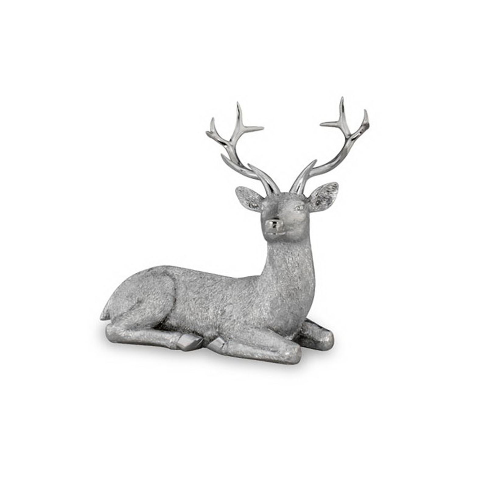 • Länge ca.: 19.8 cm • Breite ca.: 12.5 cm • Höhe ca.: 17 cm • Material: Kunststein • Beschichtung: galvanisiert • Oberfläche: strukturiert • Oberfläche Details: Felloptik • spülmaschinengeeignet: nein • Farbe: silber • Eigenschaft: Polyresin • Funktionalität: Zum Dekorieren von Tisch und Raum • Platzierungsart: zum Aufstellen • Form: realistisch • Dimension: mittelgroß • Motiv: Hirsch • Motiv-Design: sitzend mit erhobenem Kopf nach rechts • Symbolik: Symbol für Stärke, Ruhe & Naturverbundenheit • Look & Stil: Glänzende Oberfläche im eleganten, natürlichen Look • Umgebungsnutzung: Für Innenbereich und geschützten Außenbereich • Anlass: Für Raumdeko, Winterzeit, Wohnen, Ambiente, Stil, Präsent • Nutzungsbereich: Sideboard, Fensterbank, Tisch, Regal, Empfang, Wohnbereich • Nutzungsmöglichkeit: Dekorativ platzieren, Raum verschönern, Blickfang erzeugen • Gewicht ca.: 0,489 Kg