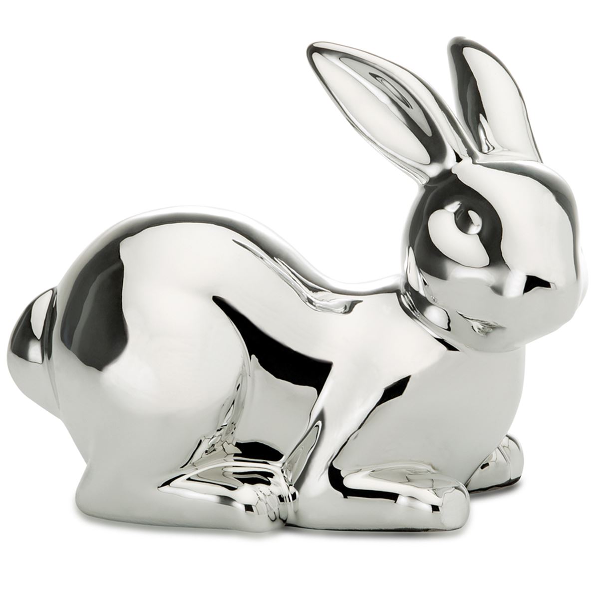 • Länge ca.: 13.5 cm • Breite ca.: 7.8 cm • Höhe ca.: 10.5 cm • Material: Porzellan • Beschichtung: galvanisiert • Oberfläche: glatt poliert, glänzend • spülmaschinengeeignet: nein • Farbe: silber • Funktionalität: Zum Dekorieren in der Osterzeit • Platzierungsart: Zum Aufstellen • Form: figürlich • Dimension: klein • Motiv: Hase • Motiv-Design: liegend mit leicht nach hinten gekippten Ohren • Symbolik: Symbol für Entspannung, Vertrauen & Harmonie • Look & Stil: Entspannt, fein, sanft, vertrauensvoll, symbolträchtig • Umgebungsnutzung: Für Innenbereich und geschützten Außenbereich • Anlass: Für Geschenkidee, Dekozweck, Jahreszeit, Präsent, Feier • Nutzungsbereich: Sideboard, Fensterbank, Tischfläche, Empfang, Verkaufsraum • Nutzungsmöglichkeit: Figur aufstellen, Fläche gestalten, Blickrichtung lenken • Verwendungshinweis: nur zur Dekoration geeignet - kein Kinderspielzeug • Gewicht ca.: 0,315 Kg