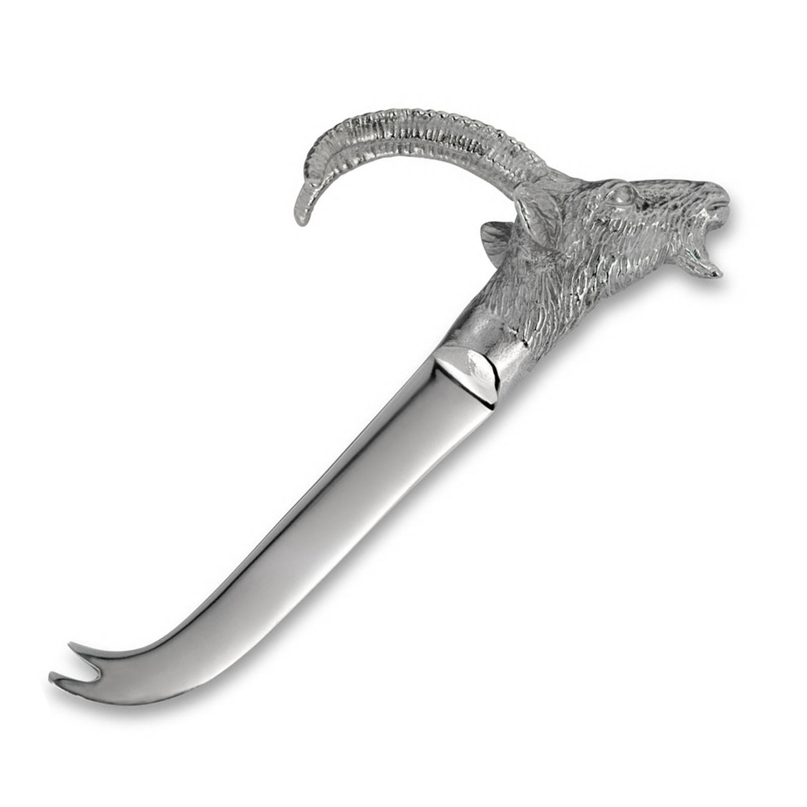 • Länge ca.: 14.5 cm • Breite ca.: 4.5 cm • Höhe ca.: 7 cm • Material: Edelstahl • Oberfläche: glatt poliert • spülmaschinengeeignet: ja • Farbe: silber • Funktionalität: Zum Schneiden und Portionieren von Käse • Platzierungsart: Zum Ablegen auf dem Tisch • Form: klein • Motiv: Steinbock • Symbolik: Symbol für Ursprünglichkeit, Genussfreude & Naturstärke • Look & Stil: Markant konturiert, charaktervoll & rustikal akzentuiert • Umgebungsnutzung: Für Innenbereich und geschützten Außenbereich • Anlass: Für Brotzeit, Jagdtafel, Käseplatte, Almfest, Geschenkidee • Nutzungsbereich: Käsebrett, Brotzeitbrett, Hütte, Gastronomie, Vesperplatz • Nutzungsmöglichkeit: Käse schneiden, stilvoll servieren, Brotzeit ergänzen • Gewicht ca.: 0,159 Kg