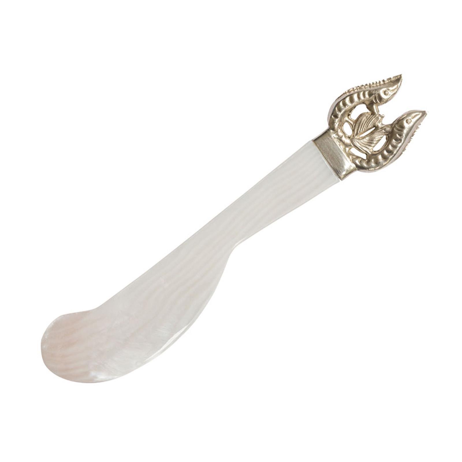 ✓ Edles 13.5 cm langes Buttermesser aus Süßwasser Perlmutt zum bestreichen von Brot oder Brötchen ✓ Perlmutt-Messer mit versilbertem Endstück in Form eines Störs, ideal auch als Kaviarmesser nutzbar ✓ Dank der Mischung aus zeitlosem Design & eleganten Stil ist das Messer ein Eyecatcher auf dem Tisch ✓ Dieses formschöne Perlmutter-Messer punktet mit dessen Geschmacksneutralität & der Glanz-Optik ✓ Das Streichmesser besteht aus nachhaltigem Perlmutt-Material und lässt sich zudem einfach reinigen