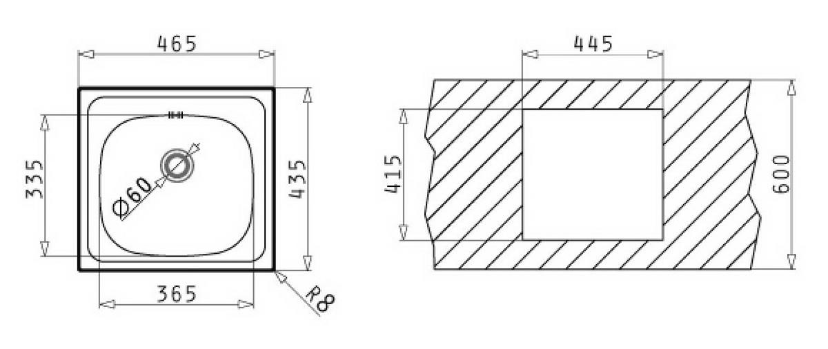 ☛ Ausstattung 1 Becken ohne Hahnloch mit Überlauf im Becken rundes Stopfen-Ventil 60 mm aufgeschäumte Dichtung (EasyFix) ☛ Abmessungen für Unterschrankbreite ab 40 cm Spülbecken 365 x 335 x 150 mm Materialstärke 0,5 mm Becken tiefgezogen