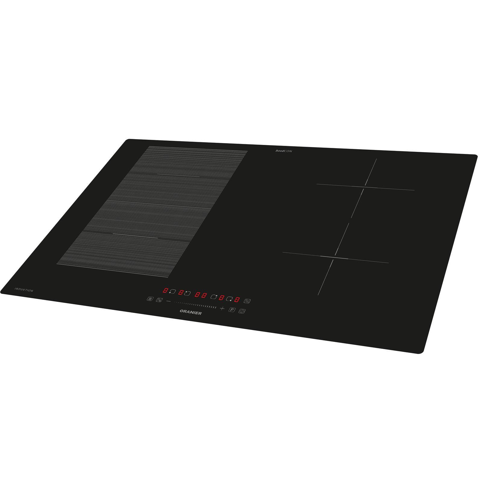 Das Highlight dieses Kochfeldes: Mit der innovativen hoodCON Funktion wird das Kochen spürbar komfortabler und einfacher. Sobald die hoodCON Funktion auf dem Kochfeld aktiviert wird, startet automatisch auch die Oranier Dunstabzugshaube, welche ebenfalls mit hoodCON ready ausgestattet sein muss. Dabei wird die Leistung der Dunsthaube an Ihre Kochintensität mit dem Kochfeld angepasst. Die Dunstabzugshaue kann aber nach wie vor, wie gewohnt, auch manuell bedient werden. Die passenden Abzugshauben sind mit dem hoodCON Feature gekennzeichnet und können optional zum Kochfeld ergänzt werden.
