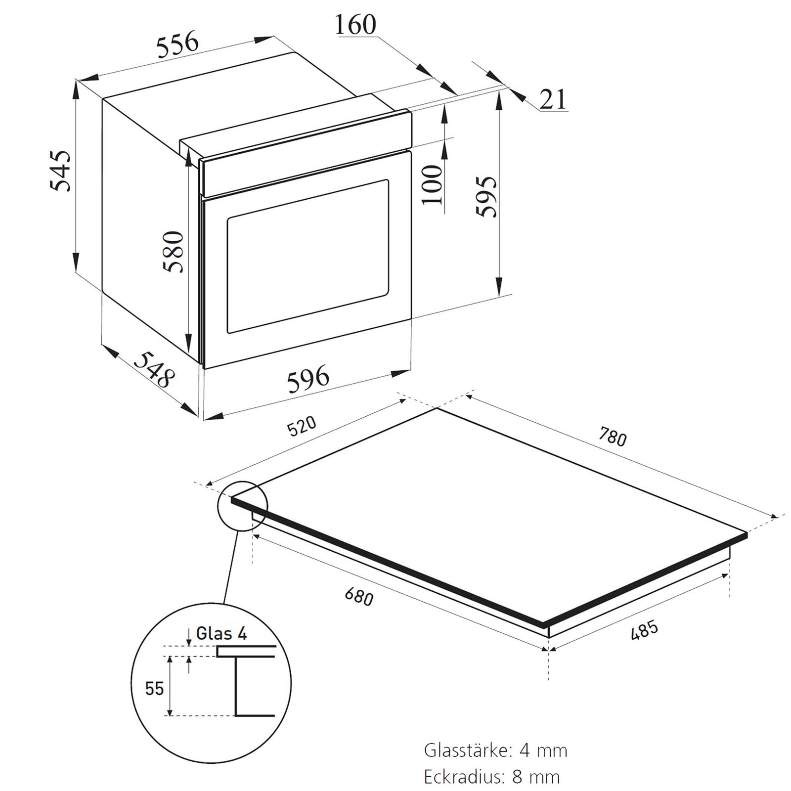 Produkt-Eigenschaften ✓ Einbau Backofen Set mit versenkbaren Knebeln, 9 Funktionen sowie 3fach verglaster Vollglasinnentür