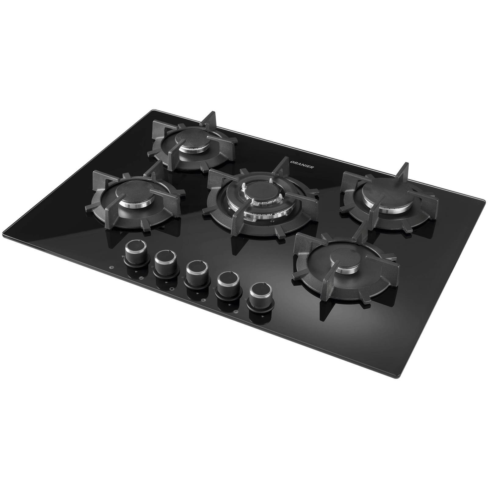 ✓ 75 cm breites Glaskeramik-Gas-Kochfeld mit 5 Kochstellen, Design Drehknebeln & 1 Satz Flüssigdüsen