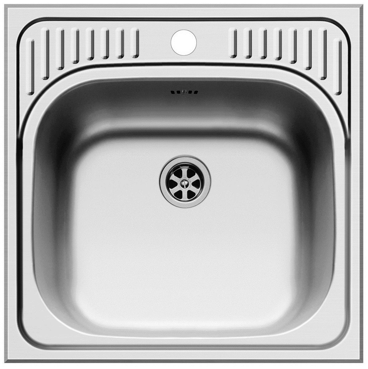 ✓ das Becken besteht aus glattem Edelstahl ✓ diese Spüle hat 1 Hahnloch oberhalb des Beckens ✓ die Spüle wird aufgesetzt (auf die Arbeitsplatte) eingebaut