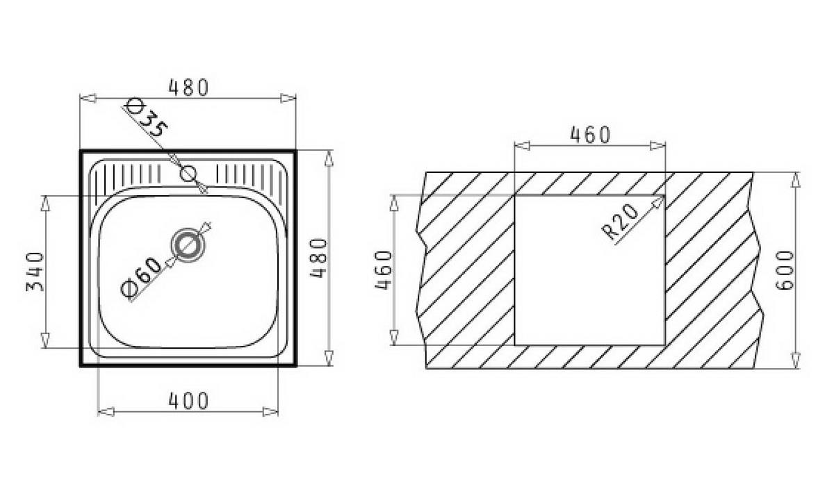 • Länge: 48 cm • Breite: 48 cm • Höhe: 15 cm • Tiefe: 48 cm • Material: Edelstahl • Material Oberfläche: glatt • Ausführung: Auflagespüle • Installationsart: Einbau • Form: rechteckig • Stil: Modern & zeitlos • Einsatzort: Küche, Hauswirtschaftsraum, Keller, Waschraum, Gartenküche • Montage: Aufgesetzt