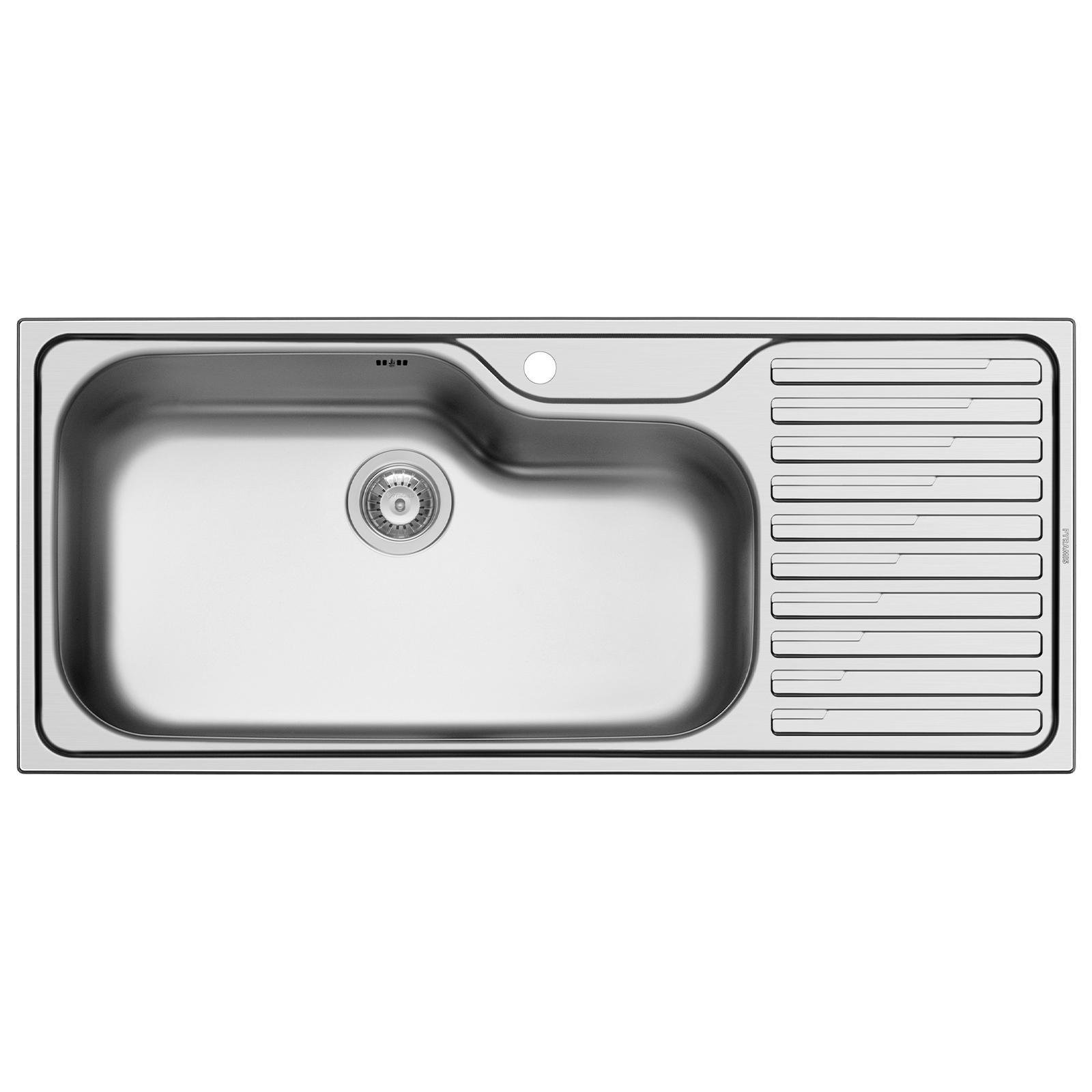 ✓ Geräumige 116x50 cm Spüle mit viel Freiraum für Töpfe, Pfannen & Teller mit geschwungenem Becken ✓ Großes Spülbecken mit rundem Ø 92 mm Siebkorb-Ventil und einen Überlauf direkt im Abwaschbecken ✓ Großzügige Edelstahlspüle mit Abtropffläche und 1 Hahnloch - passend für 90 cm breite Unterschränke ✓ Praktische & einfache Montage - die Küchenspüle wird direkt auf eine Arbeitsplatte aufgelegt montiert ✓ Robustes Edelstahl-Einzelbecken optimal für größere Küchenzeilen & perfekt für den täglichen Einsatz