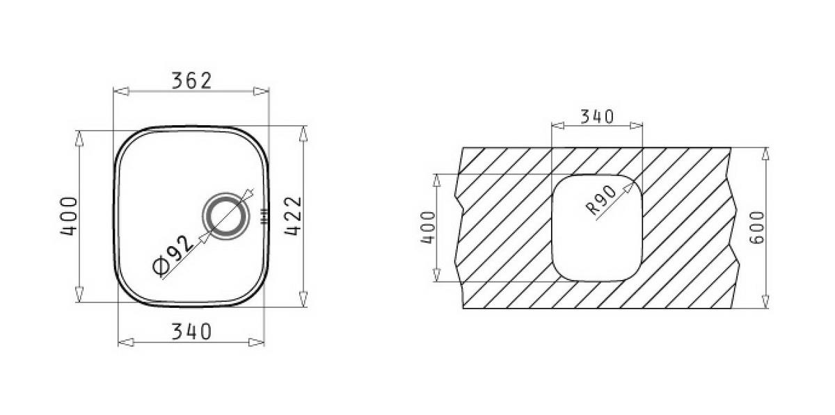• Länge: 36.2 cm • Breite: 36.2 cm • Höhe: 18 cm • Tiefe: 42,2 cm • Material: Edelstahl • Material Oberfläche: poliert • Ausführung: Unterbauspüle • Installationsart: Unterbau • Form: rechteckig • Stil: Modern, elegant & zeitlos • Einsatzort: Küche, Hauswirtschaftsraum, Keller, Waschraum, Gartenküche • Montage: Unterbau