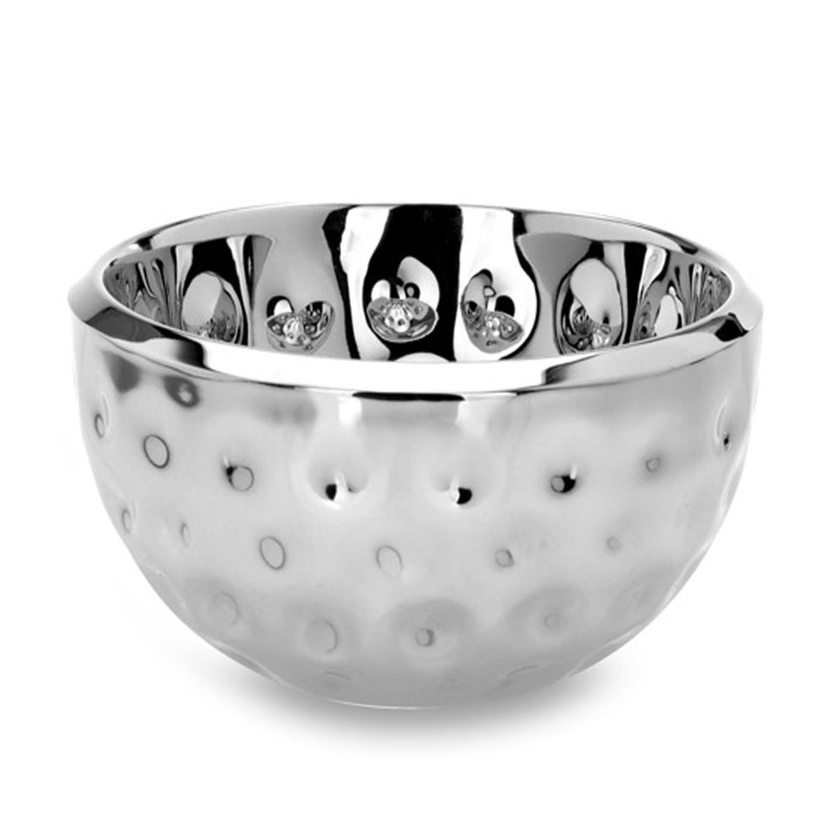 • Höhe ca.: 11 cm • Durchmesser ca.: 20 cm • Innenmaß ca.: Ø 18 cm • Randbreite ca.: 1 cm • Volumen: 1200 ml • Ausführung: hoch • Material: Edelstahl • Oberfläche: glatt poliert • Oberfläche Details: gehämmert • spülmaschinengeeignet: ja • Farbe: silber • Eigenschaft: ohne Griffe - ohne Füße • Ausstattung: hoher Rand • Funktionalität: Zum Anrichten und Servieren von Speisen • Platzierungsart: Zum Aufstellen auf dem Tisch • Form: rund • Dimension: mittelgroß • Symbolik: Symbol für Balance, Ästhetik & stilles Servierbewusstsein • Look & Stil: glänzend ruhig, harmonisch, leicht konturiert, stilrein • Umgebungsnutzung: Für Innenbereich und geschützten Außenbereich • Anlass: Für Tischkultur, Wohnen, Empfang, Präsentation, Hotel, Stil • Nutzungsbereich: Esstisch, Küchentheke, Buffet, Empfang, Hotel, Gastronomie • Nutzungsmöglichkeit: Snacks servieren, Obst präsentieren, Tisch stilvoll decken • Gewicht ca.: 0,669 Kg