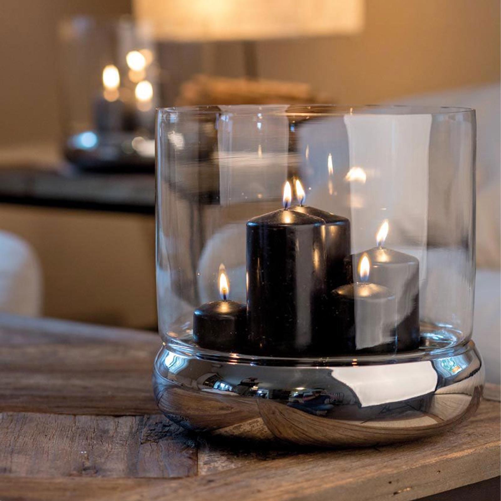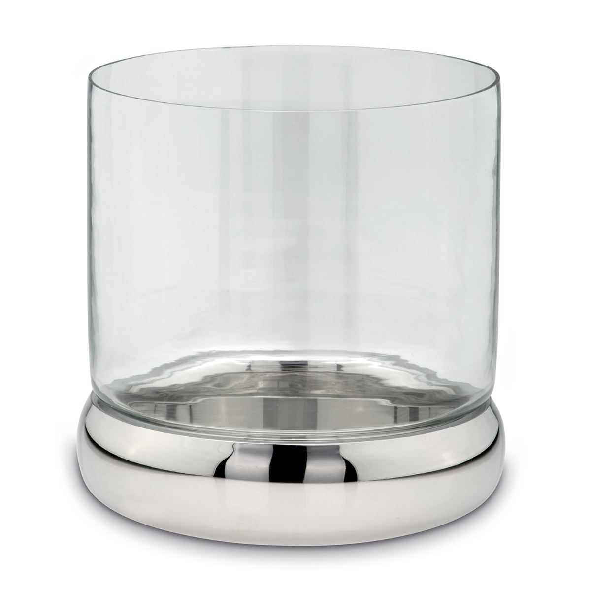 • Höhe ca.: 24 cm • Durchmesser ca.: 24 cm • Detailmaß ca.: Glaszylinder Ø oben 23.8 cm/unten 20.5 cm / 19.7 cm hoch • Kapazität: für 1 Stumpenkerze • Material: Glas • Material 1: Edelstahl • Oberfläche: glatt poliert • spülmaschinengeeignet: ja • Farbe: silber • Eigenschaft: Glaszylinder abnehmbar • Ausstattung: 1 Kerzenhalter • Ausstattung 1: versilberter runder Standfuß • Ausstattung 2: Schutzglas • Funktionalität: Zum Dekorieren und Beleuchten mit Kerzen • Platzierungsart: zum Aufstellen • Form: rund • Dimension: groß • Symbolik: Symbol für Lichtkultur, Geborgenheit & stillen Ausdruck • Look & Stil: Puristisch, sanft reflektierend, harmonisch & präsent • Umgebungsnutzung: Für Innenbereich und geschützten Außenbereich • Anlass: Für Wohndeko, Tischdeko, Präsent, Licht, Geschenk, Stil • Nutzungsbereich: Esstisch, Fensterbank, Sideboard, Empfang, Wohnzimmer, Regal • Nutzungsmöglichkeit: Kerze geschützt einsetzen, Licht betonen, Stimmung erzeugen • Gewicht ca.: 2,32 Kg