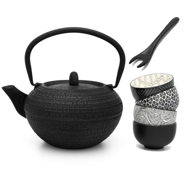 Die asiatische Teekanne aus Gusseisen mit Porzellan-Teetassen (black teapot Set cast-iron) ist ein schönes Geschenk zu Weihnachten oder zum Geburtstag. Mit dem Teekannen Set schenken Sie puren Genuss! Ob für den täglichen Gebrauch, traditionelle Feste, einen schön dekorierten Esszimmertisch oder als individuelle Dekoration für Ihre Gastronomie - das Teezeremonie Set ist vielfältig und praktisch.